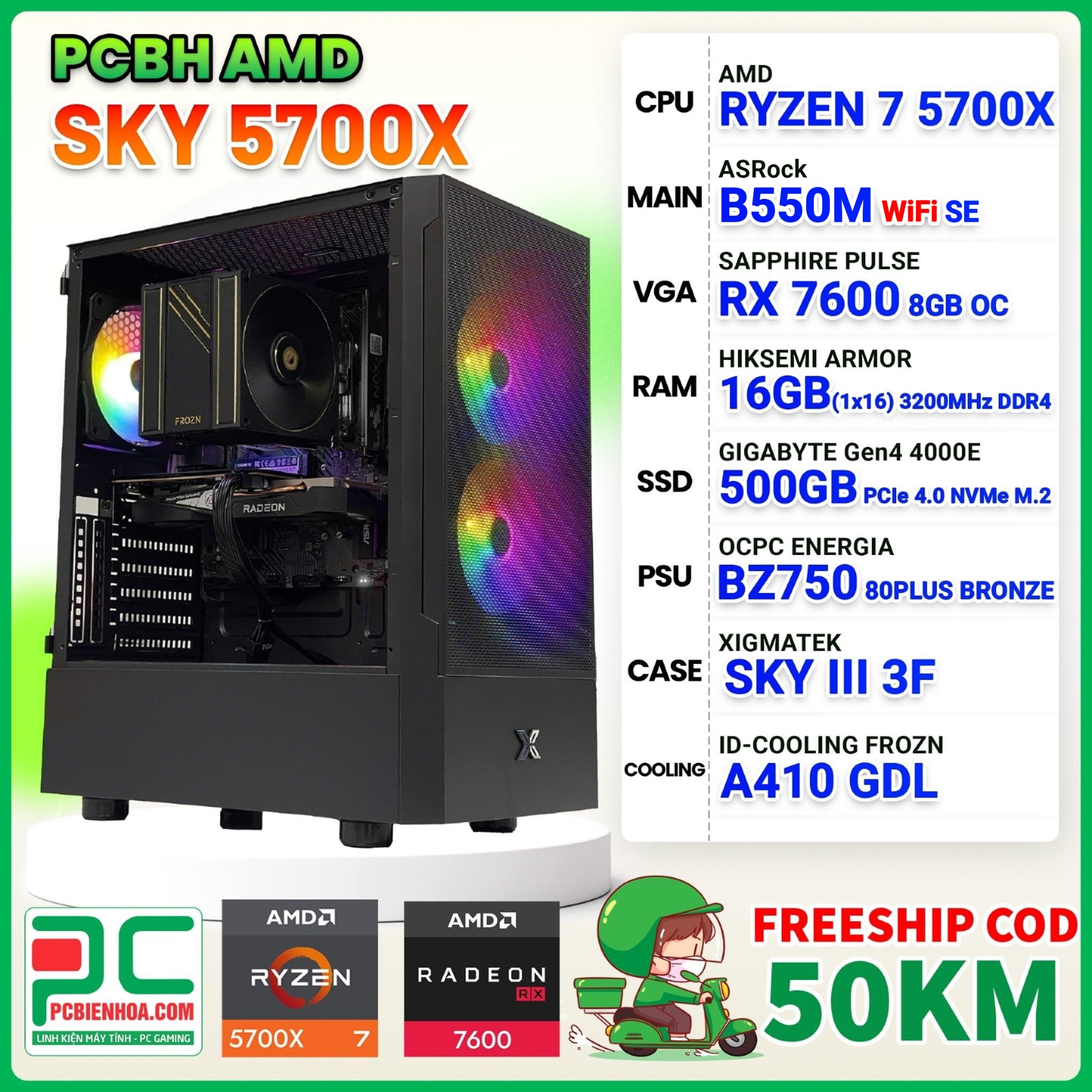 + So sánhPCBH AMD MYX RYZEN 5 5600X / B550M / RX 7600 8GB / 16GB / 256GB
