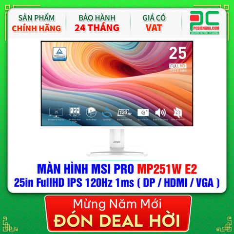 MÀN HÌNH MSI PRO MP251W E2 MÀU TRẮNG - 25in FullHD IPS 120Hz 1ms ( DP / HDMI / VGA )