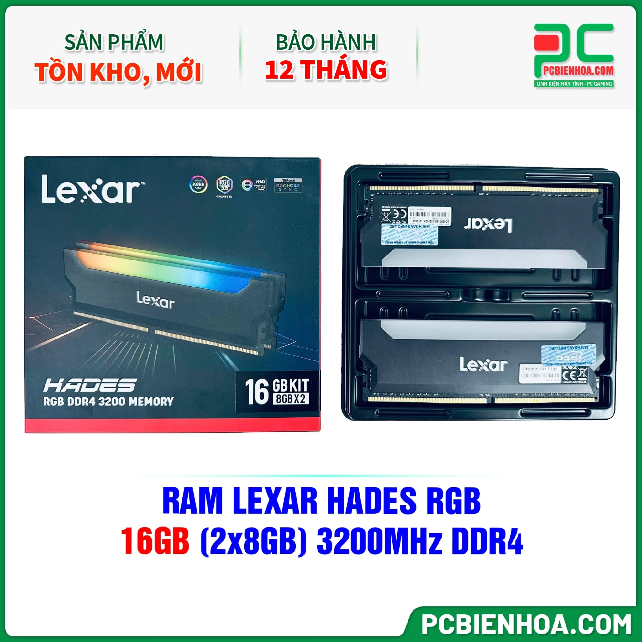 HÀNG THANH LÝ - RAM LEXAR HADES RGB - 16GB (2x8GB) 3200MHz DDR4 - BẢO HÀNH 12 THÁNG