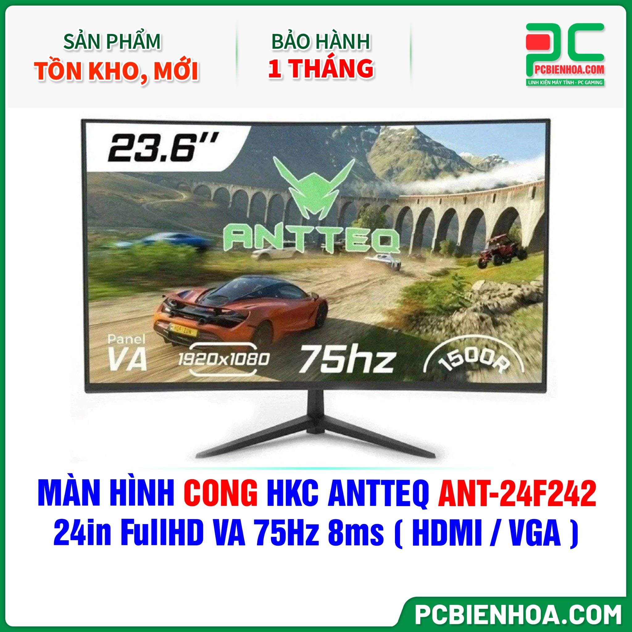HÀNG THANH LÝ - MÀN HÌNH CONG HKC ANTTEQ ANT-24F242 - 24in FullHD VA 75Hz 8ms ( HDMI / VGA ) - BẢO HÀNH 1 THÁNG