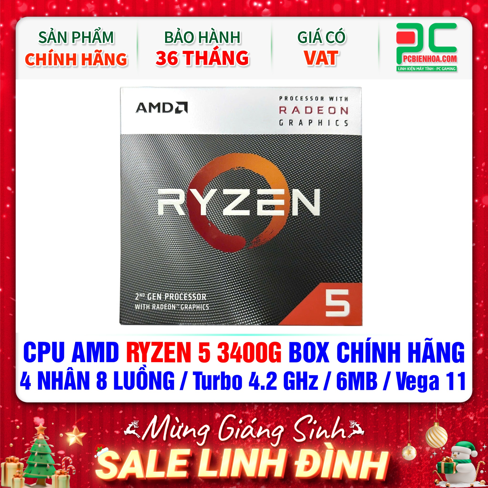 + So sánhCPU AMD Ryzen 5 3400G BOX CHÍNH HÃNG ( 4 NHÂN 8 LUỒNG / Turbo 4.2 GHz / 6MB / Vega 11 Graphics )