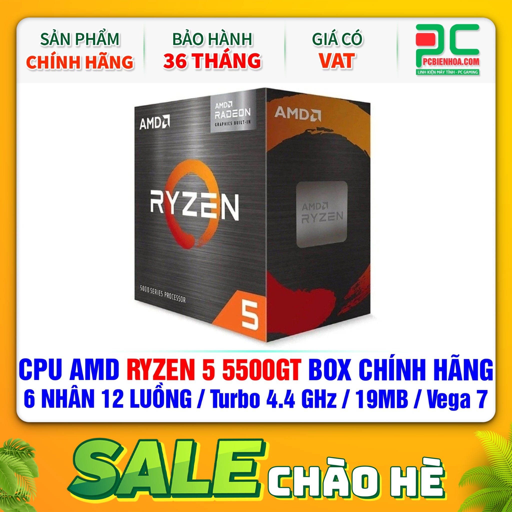 CPU AMD Ryzen 5 5500GT BOX CHÍNH HÃNG ( 6 NHÂN 12 LUỒNG / Turbo 4.4 GHz / 19MB / Vega 7 Graphics )