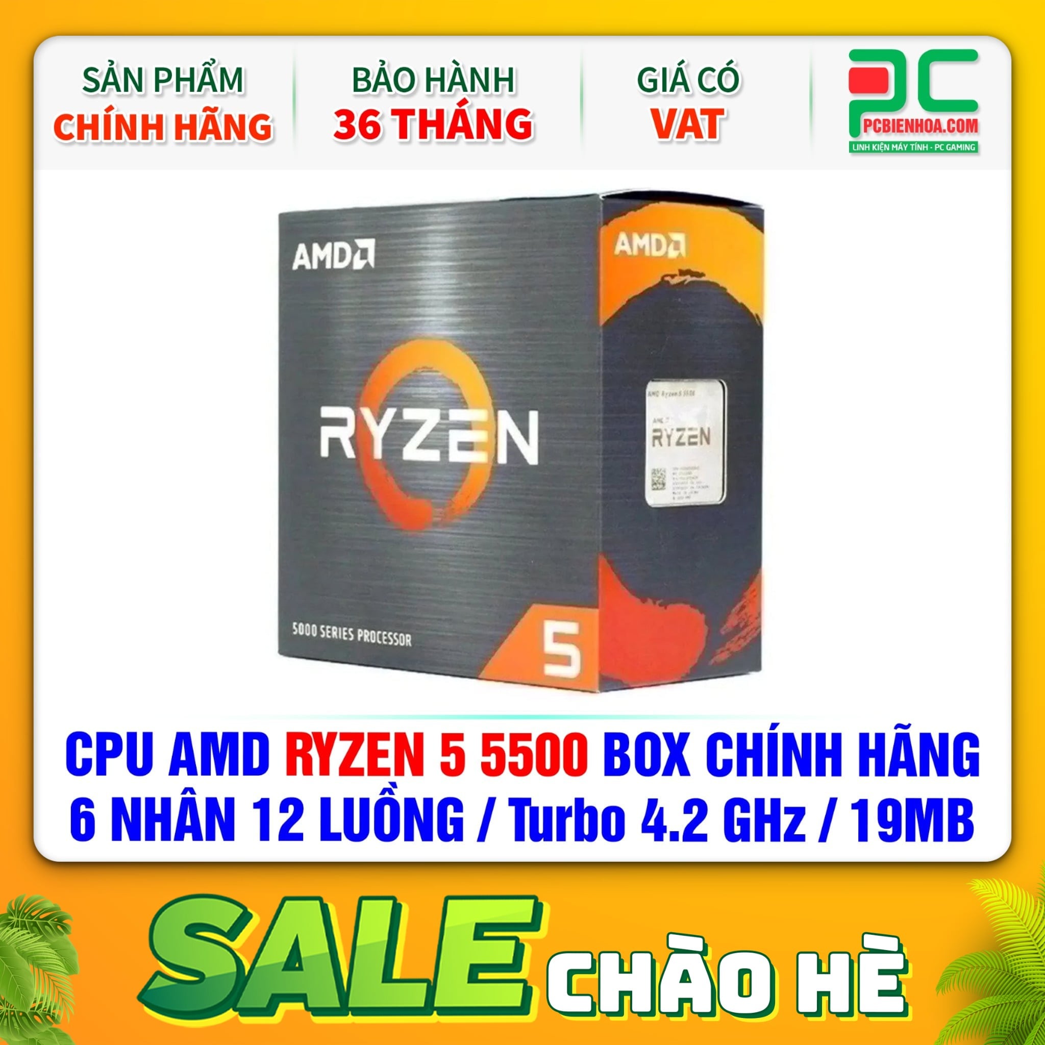 CPU AMD RYZEN 5 5500 BOX CHÍNH HÃNG ( 6 NHÂN 12 LUỒNG / Turbo 4.2 GHz / 19MB )