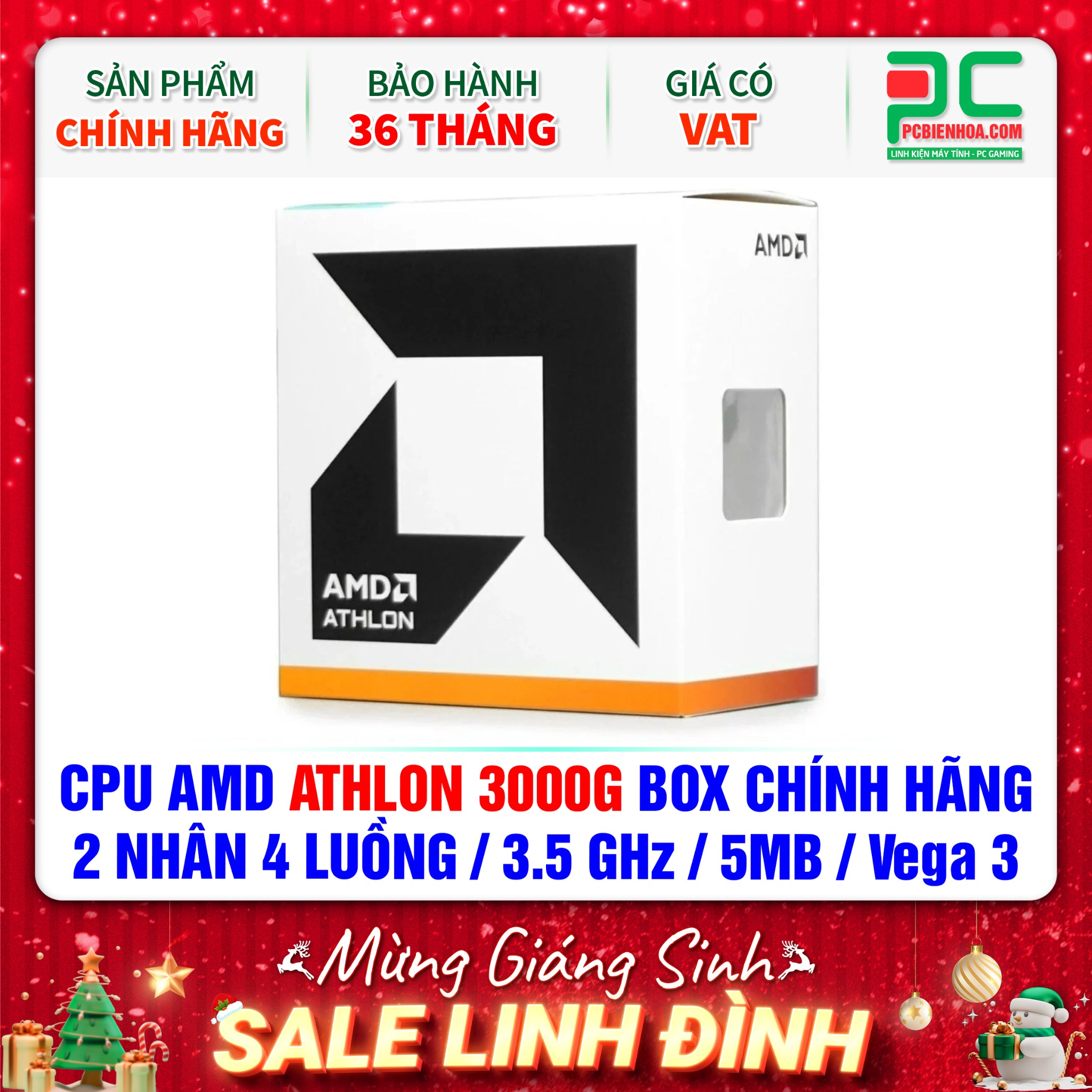 CPU AMD ATHLON 3000G BOX CHÍNH HÃNG ( 2 NHÂN 4 LUỒNG / 3.5 GHz / 5MB / Vega 3 Graphics )