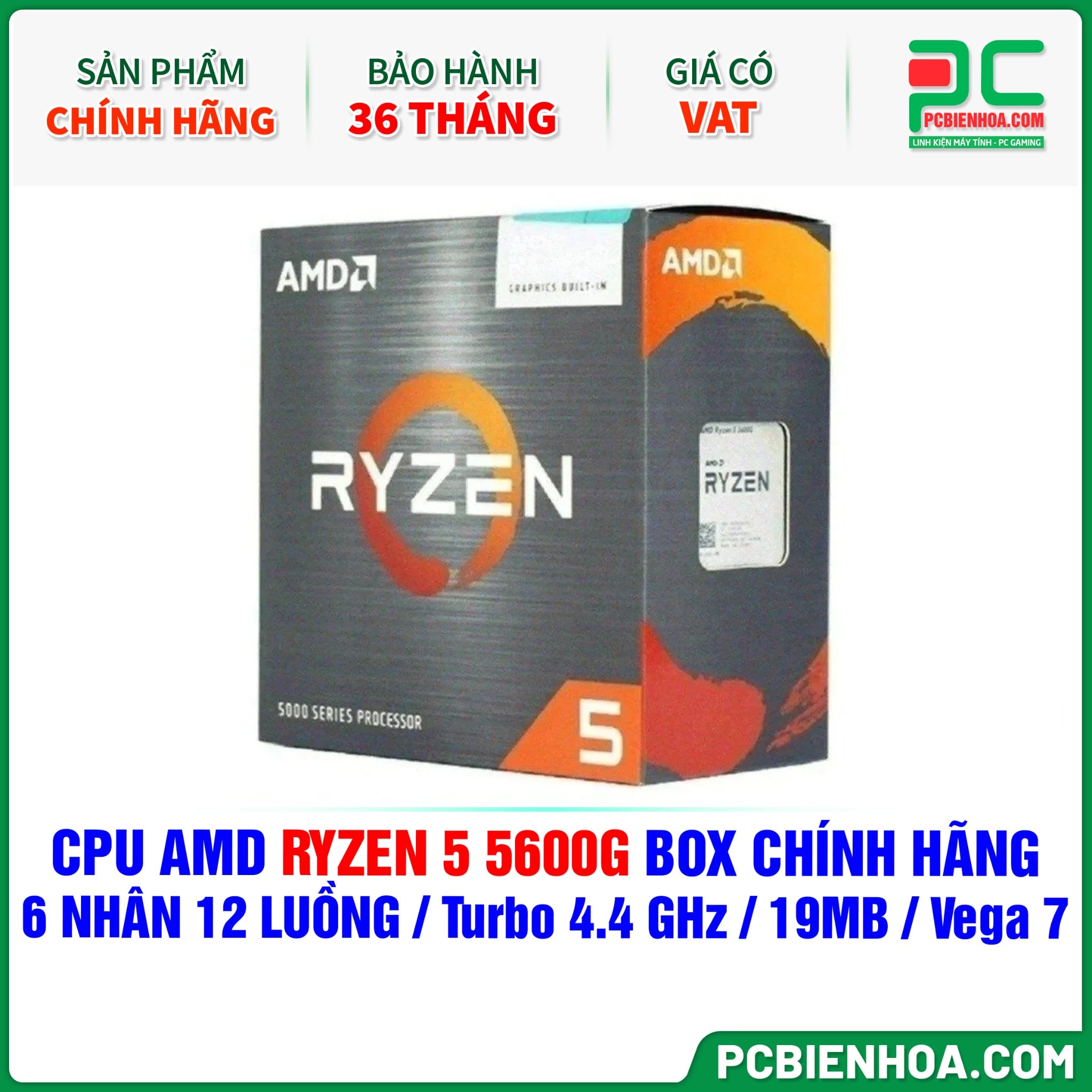 CPU AMD RYZEN 5 5600G BOX CHÍNH HÃNG ( 6 NHÂN 12 LUỒNG / Turbo 4.4 GHz / 19MB / Vega 7 Graphics )