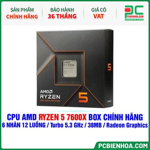 CPU AMD Ryzen 5 7600X BOX CHÍNH HÃNG ( 6 NHÂN 12 LUỒNG / Turbo 5.3 GHz / 38MB / Radeon Graphics )