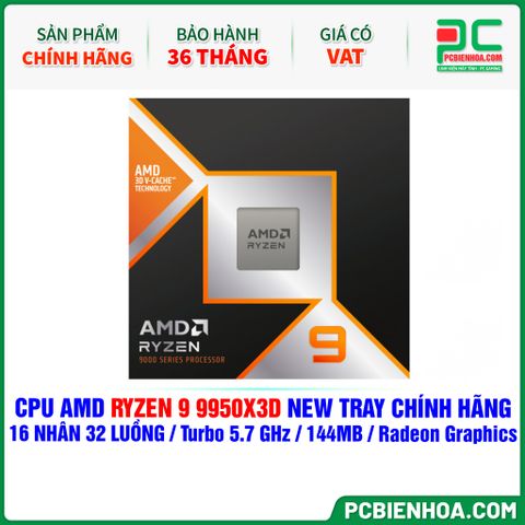 CPU AMD Ryzen 9 9950X3D NEW TRAY CHÍNH HÃNG ( 16 NHÂN 32 LUỒNG / Turbo 5.7 GHz / 144MB / Radeon Graphics )