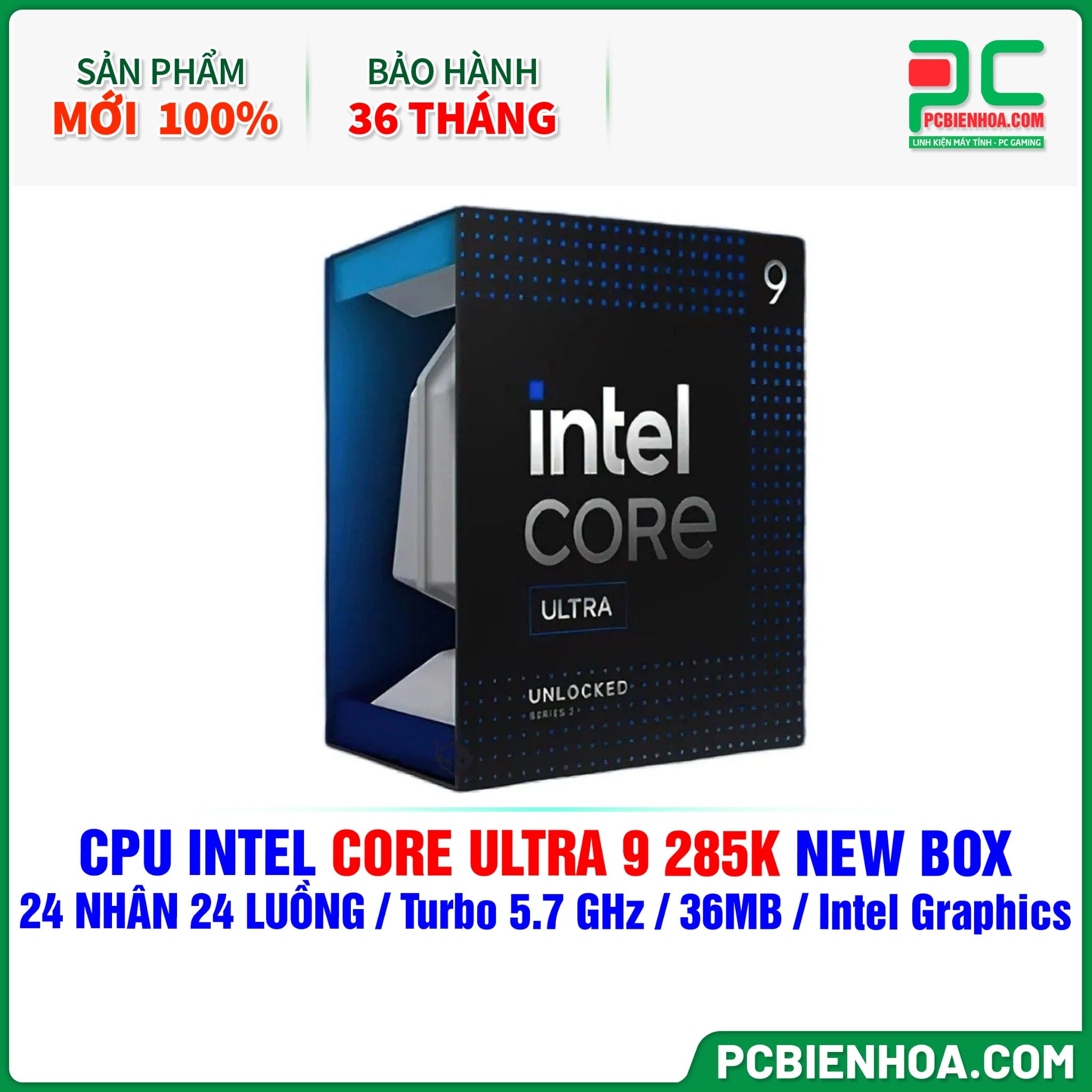 CPU Intel Core Ultra 9 285K NEW BOX ( 24 NHÂN 24 LUỒNG / Turbo 5.7 GHz / 36MB / Intel Graphics )