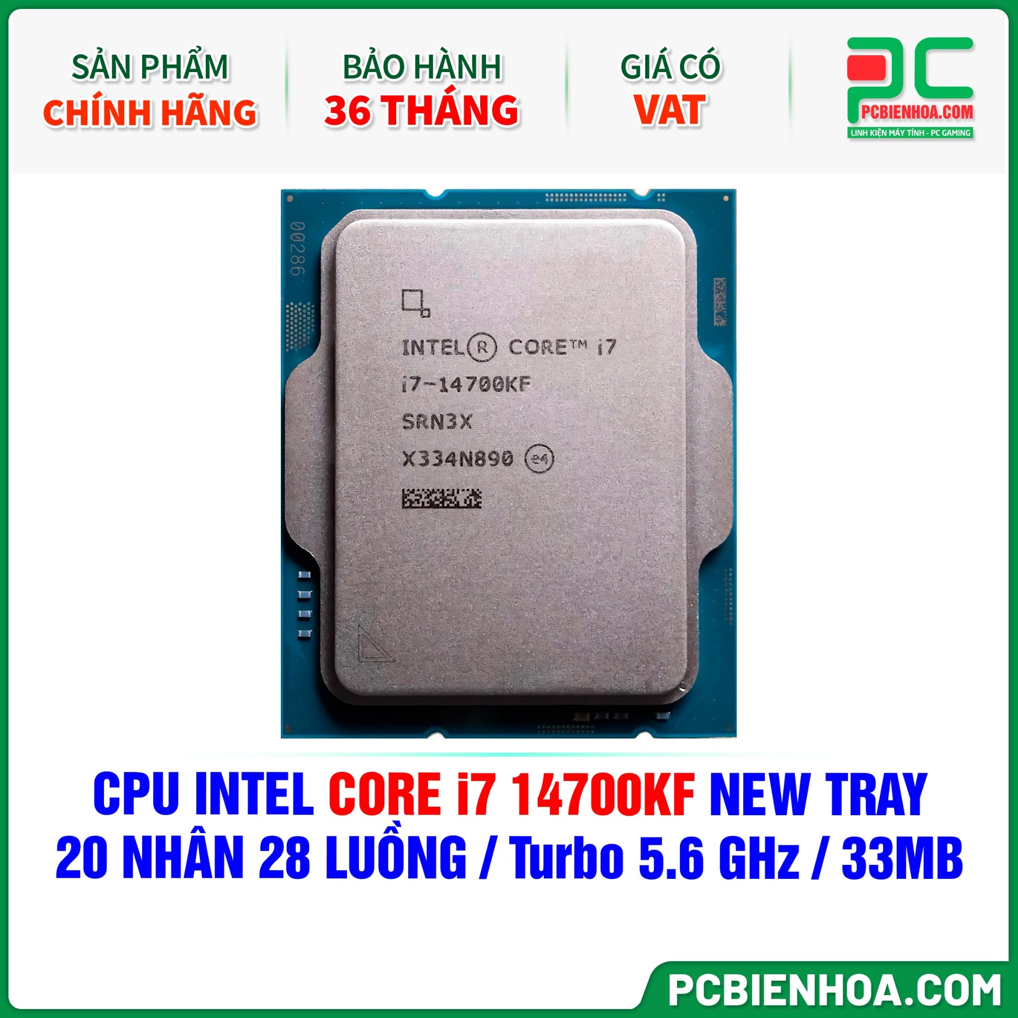 CPU INTEL CORE i7 14700KF NEW TRAY CÓ VAT ( 20 NHÂN 28 LUỒNG / Turbo 5.6 GHz / 33MB )
