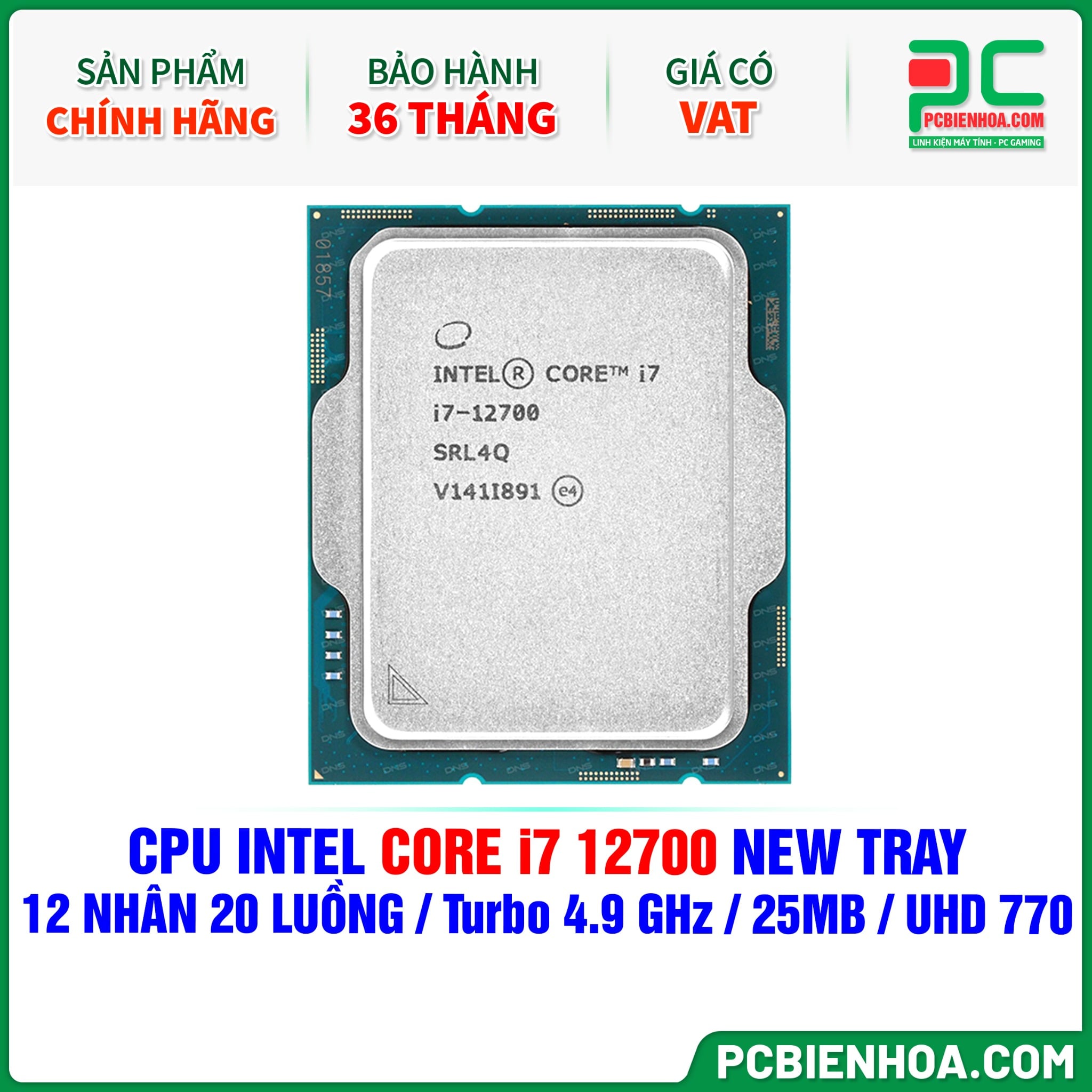 CPU INTEL CORE i7 12700 NEW TRAY CÓ VAT ( 12 NHÂN 20 LUỒNG / Turbo 4.9 GHz / 25MB / UHD Graphics 770 )