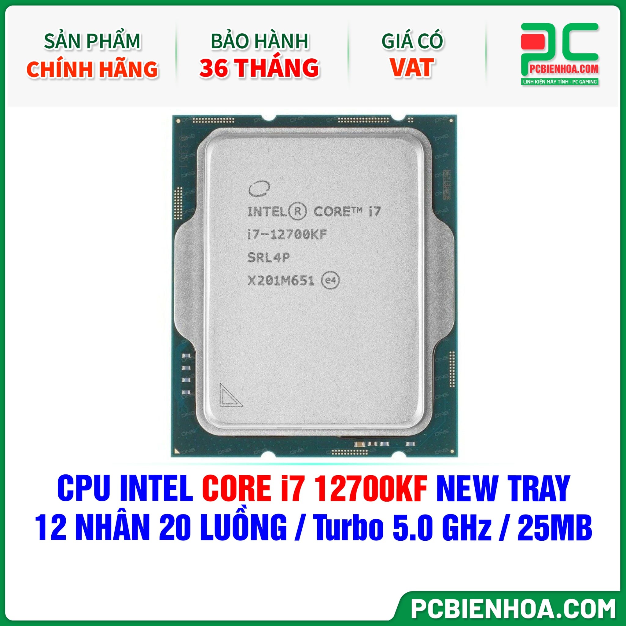 CPU INTEL CORE i7 12700KF NEW TRAY CÓ VAT ( 12 NHÂN 20 LUỒNG / Turbo 5.0 GHz / 25MB )