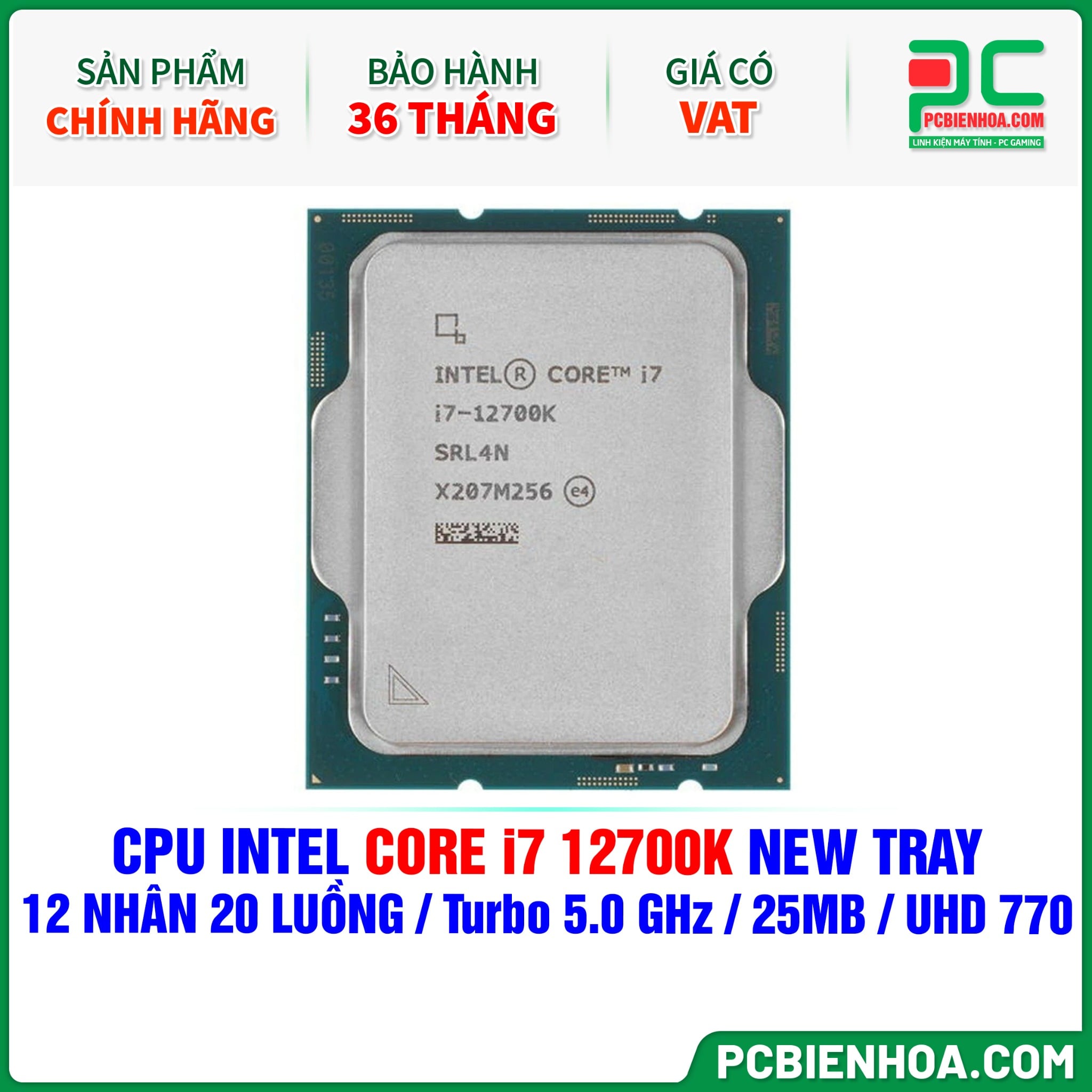 CPU INTEL CORE i7 12700K NEW TRAY CÓ VAT ( 12 NHÂN 20 LUỒNG / Turbo 5.0 GHz / 25MB / UHD GRAPHICS 770 )