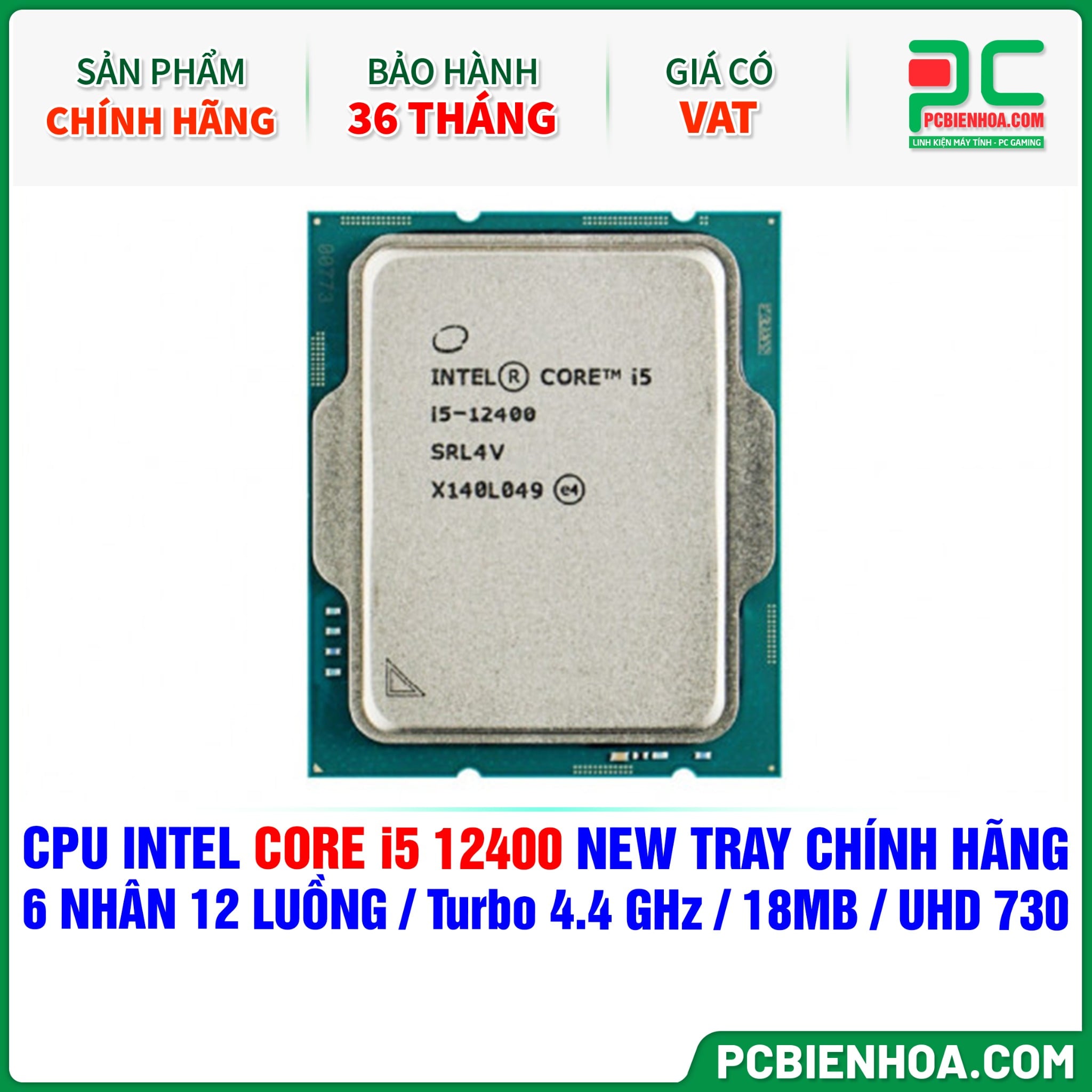 CPU INTEL CORE i5 12400F NEW TRAY CÓ VAT - CHƯA KÈM TẢN NHIỆT ( 6 NHÂN 12 LUỒNG / Turbo 4.4 GHz / 18MB )