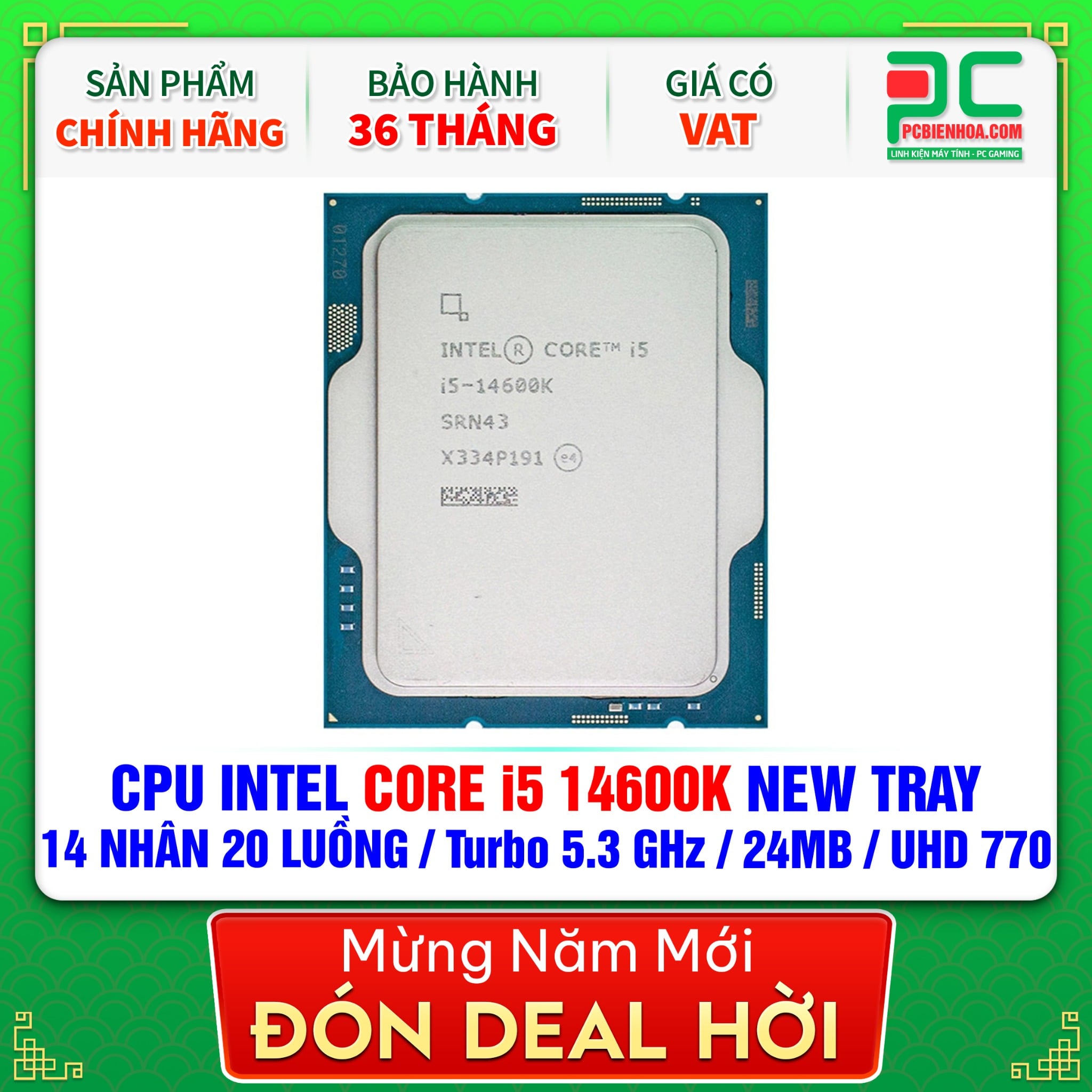 CPU INTEL CORE i5 14600KF NEW TRAY CÓ VAT ( 14 NHÂN 20 LUỒNG / Turbo 5.3 GHz / 24MB )