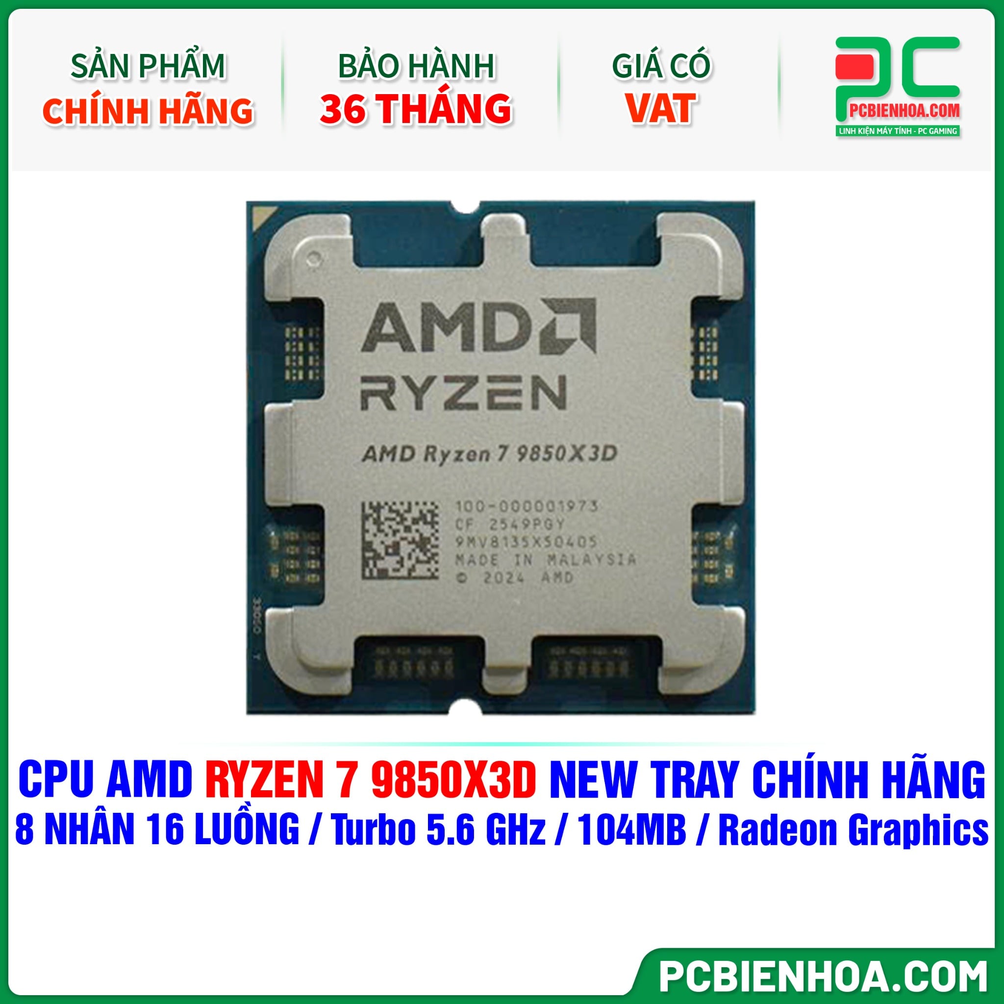 CPU AMD RYZEN 7 9850X3D NEW TRAY CHÍNH HÃNG ( 8 NHÂN 16 LUỒNG / Turbo 5.6 GHz / 104MB / Radeon Graphics )