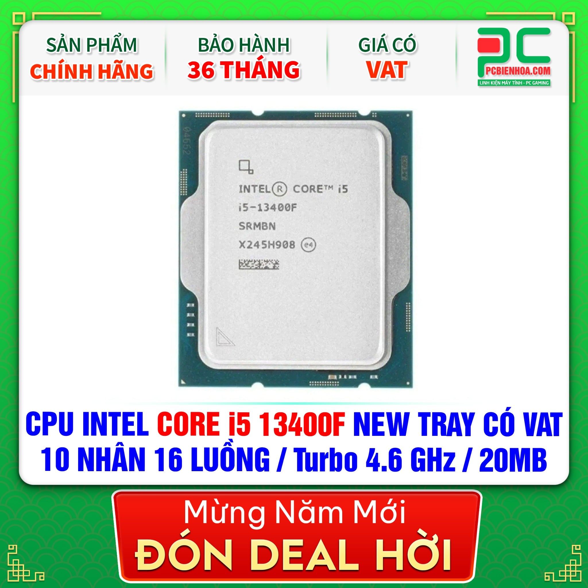 CPU INTEL CORE i5 13400F NEW TRAY CÓ VAT - CHƯA KÈM TẢN NHIỆT ( 10 NHÂN 16 LUỒNG / Turbo 4.6 GHz / 20MB )