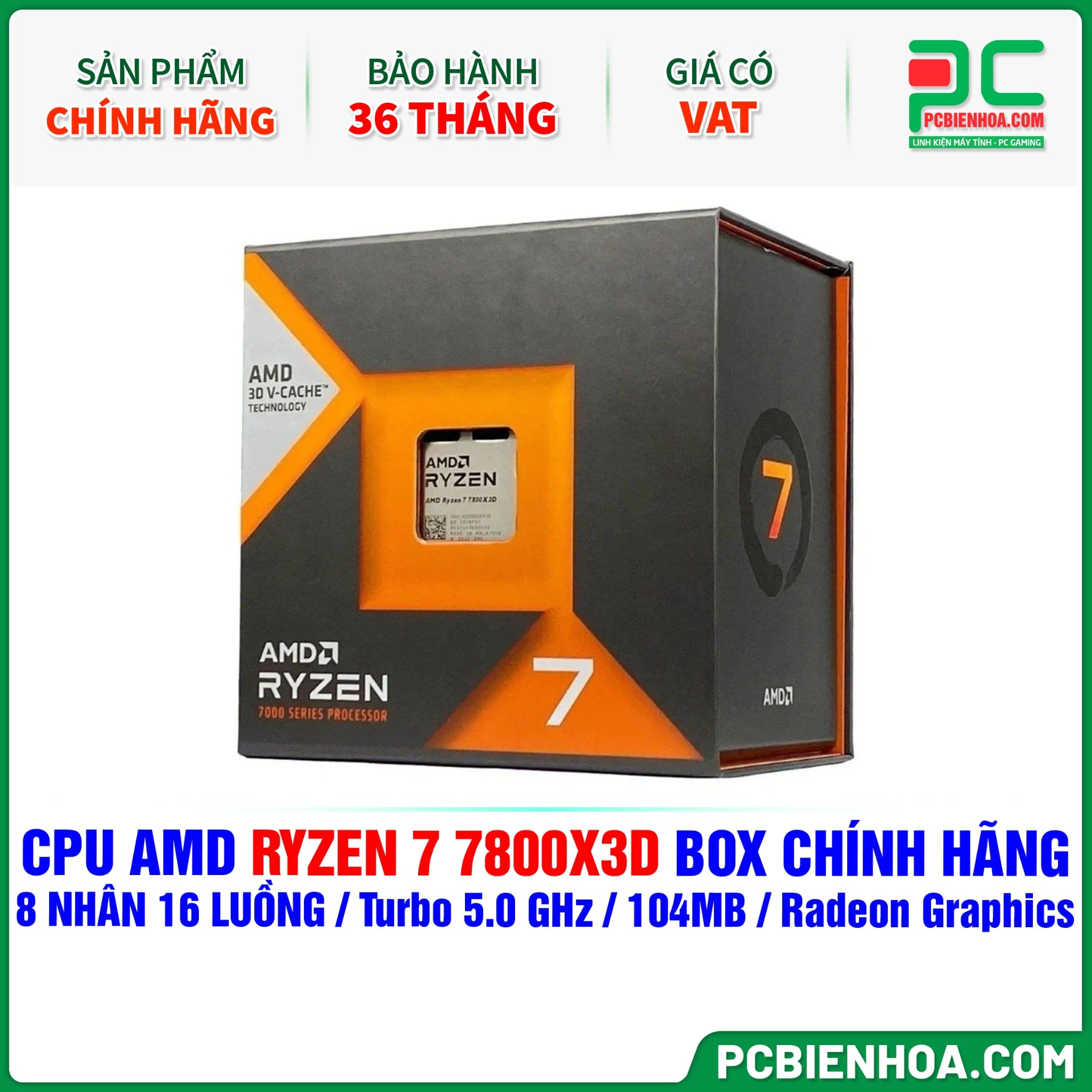 CPU AMD Ryzen 7 7800X3D BOX CHÍNH HÃNG ( 8 NHÂN 16 LUỒNG / Turbo 5.0 GHz / 104MB / Radeon Graphics )