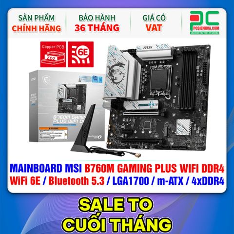 MAINBOARD MSI B760M GAMING PLUS WIFI DDR4 ( WiFi 6E / Bluetooth 5.3 / LGA1700 / m-ATX / 4xDDR4 )