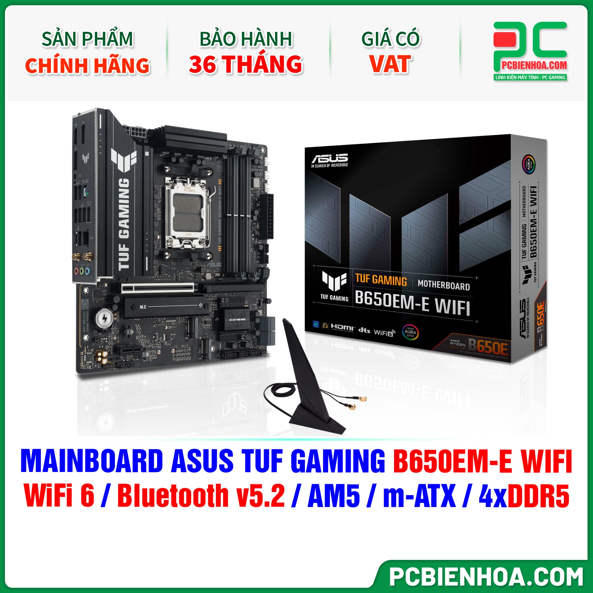 + So sánhDDR5 - MAINBOARD ASUS TUF GAMING B650EM-E WIFI ( WiFi 6 / Bluetooth v5.2 / AM5 / m-ATX / 4xDDR5 )