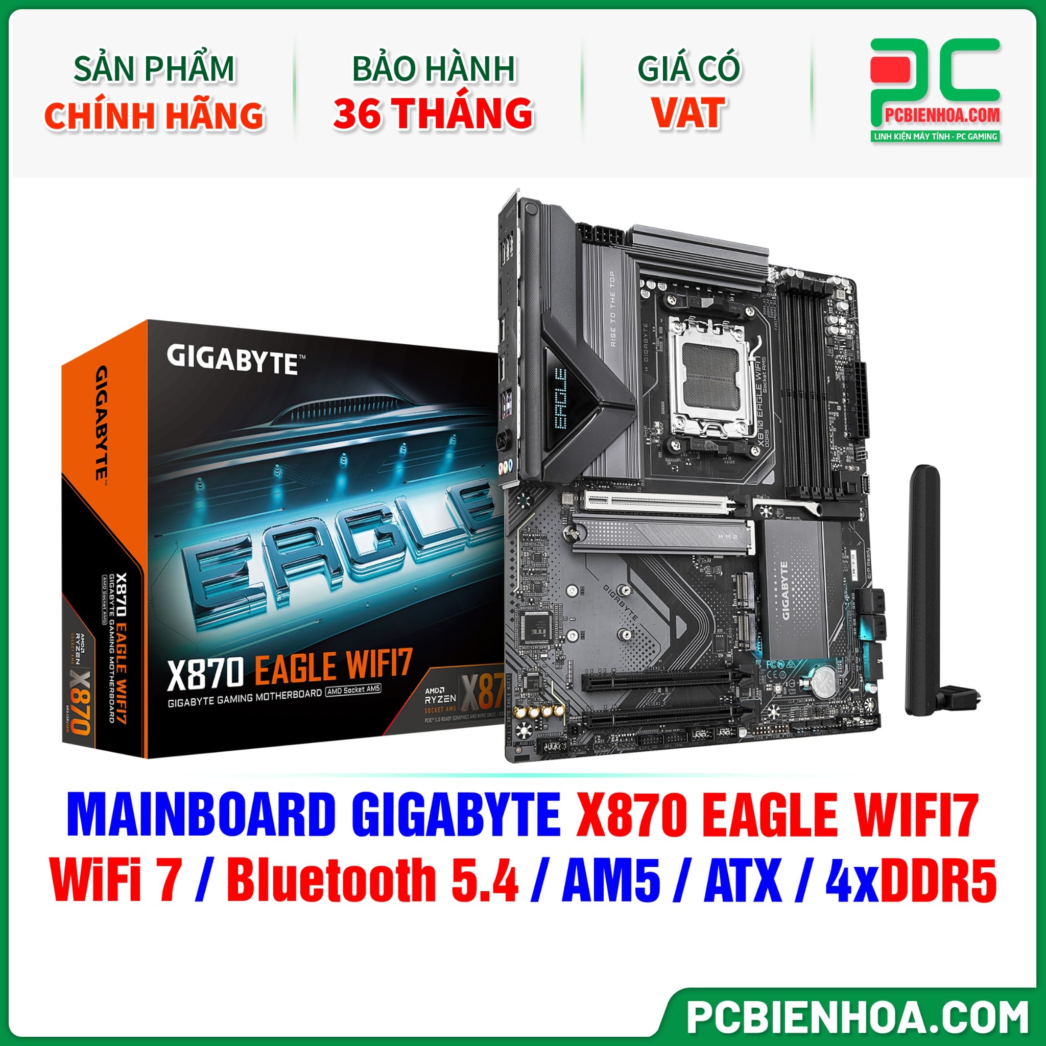 + So sánhDDR5 - MAINBOARD GIGABYTE X870 EAGLE WIFI7 ( WiFi 7 / Bluetooth 5.4 / AM5 / ATX / 4xDDR5 )