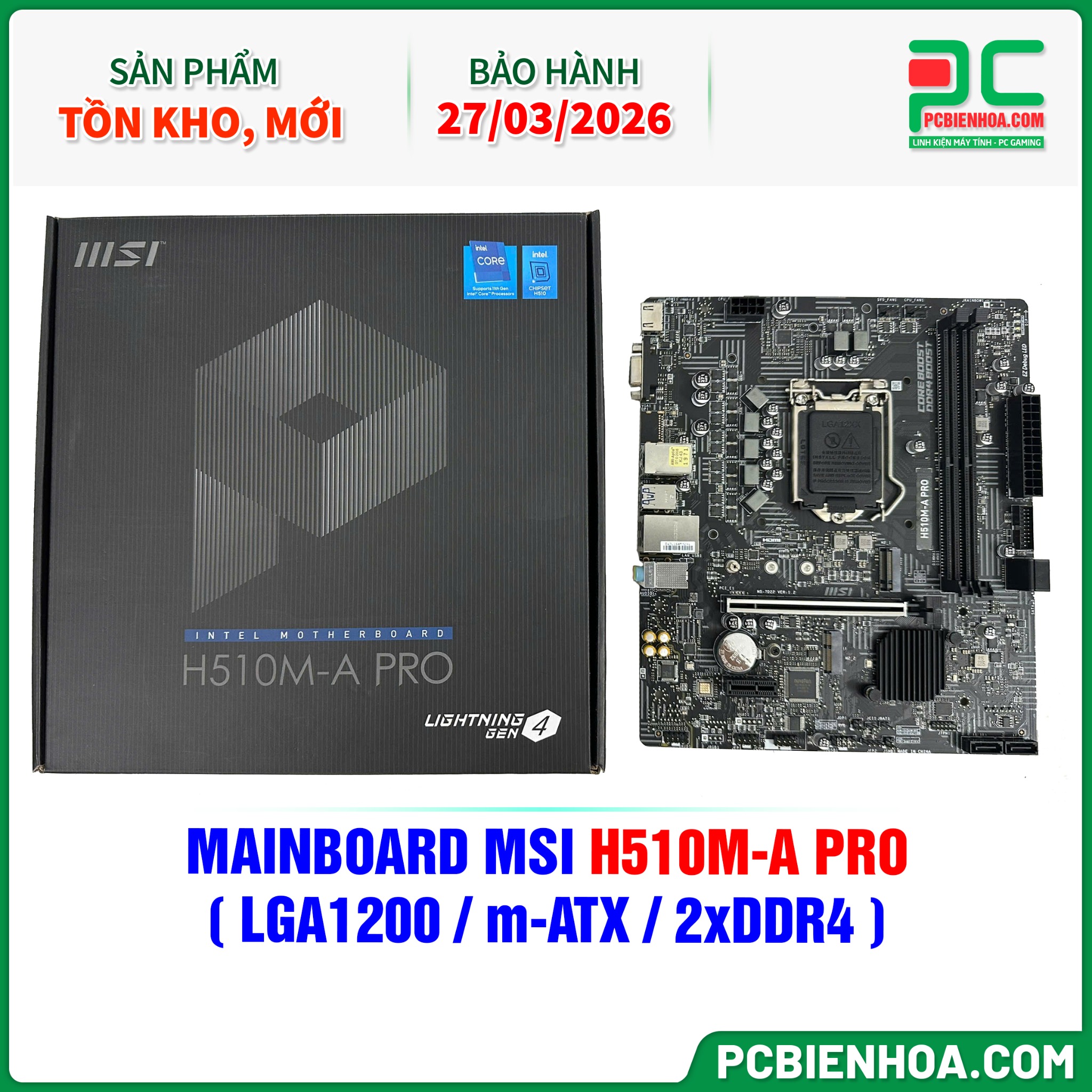 HÀNG THANH LÝ - MAINBOARD MSI H510M-A PRO ( LGA1200 / m-ATX / 2xDDR4 ) - BẢO HÀNH 27/03/2026