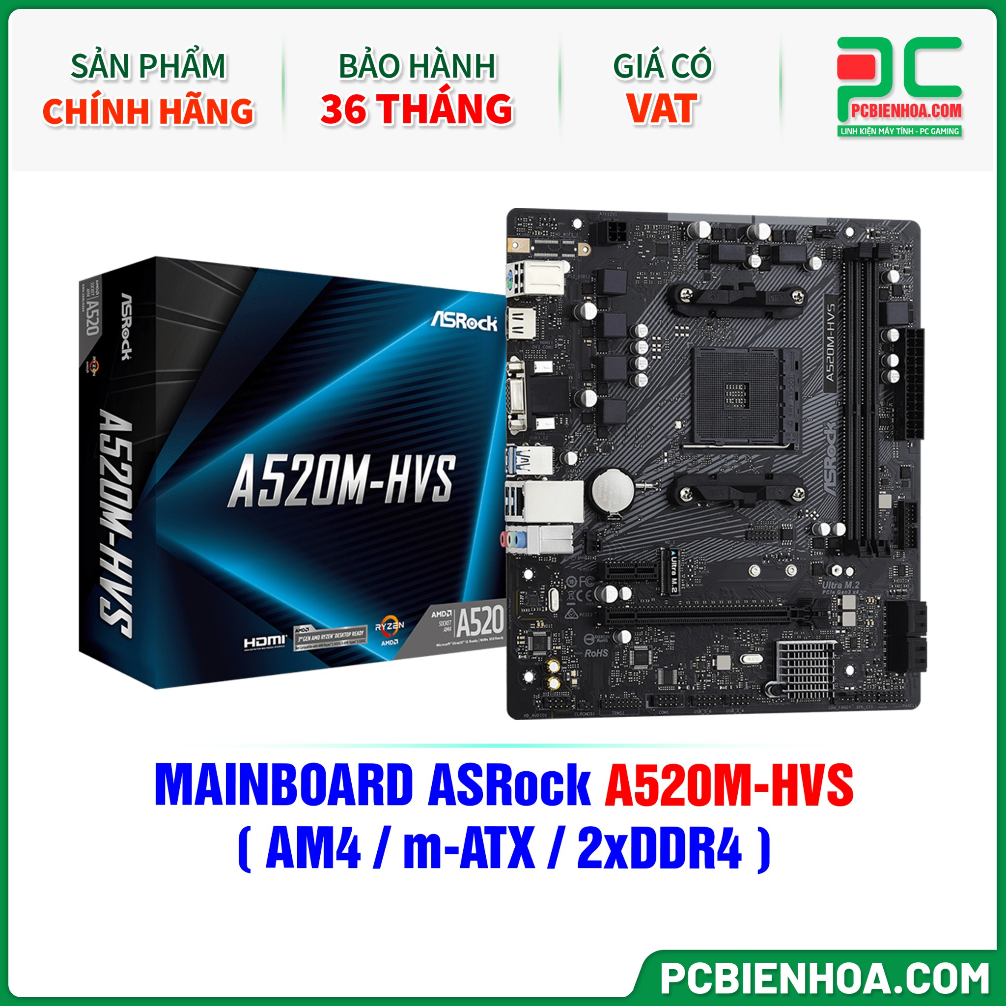 MAINBOARD ASRock A520M-HVS ( AM4 / m-ATX / 2xDDR4 )