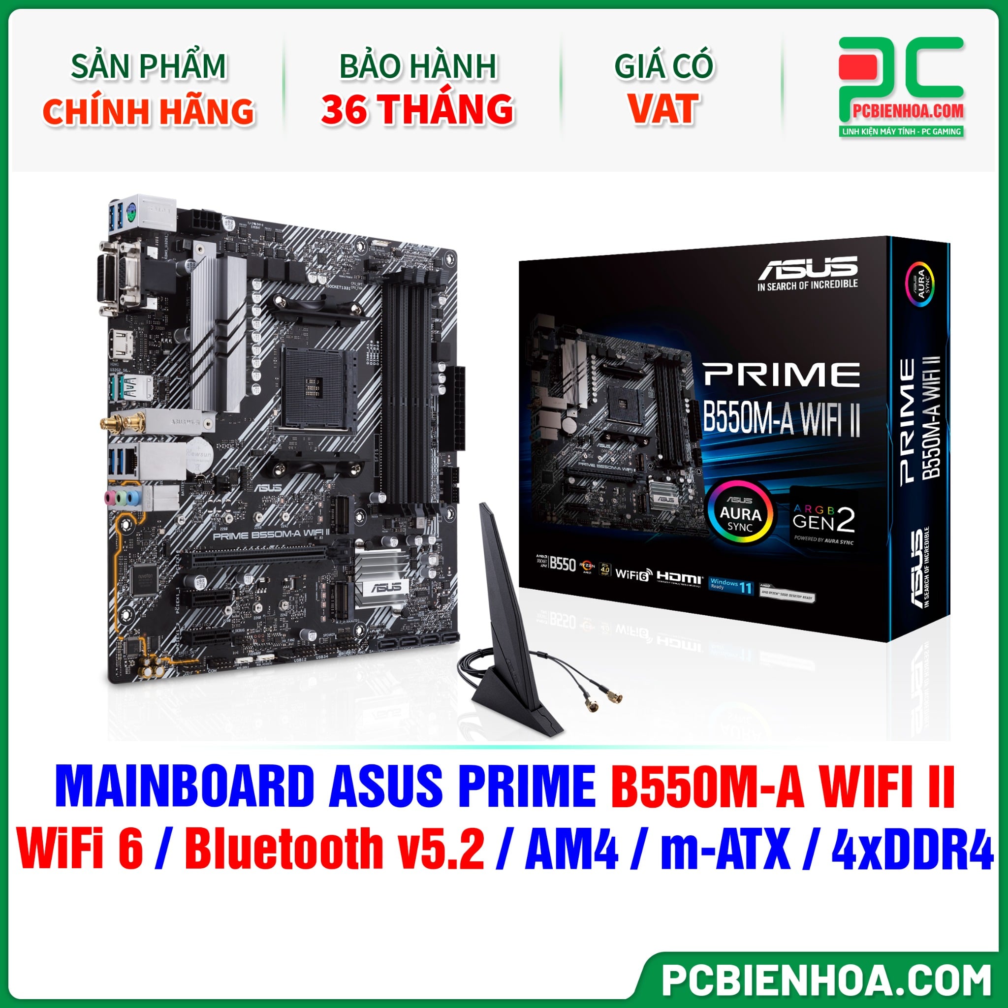 + So sánhMAINBOARD ASUS PRIME B550M-A WIFI II ( WiFi 6 / Bluetooth v5.2 / AM4 / m-ATX / 4xDDR4 )