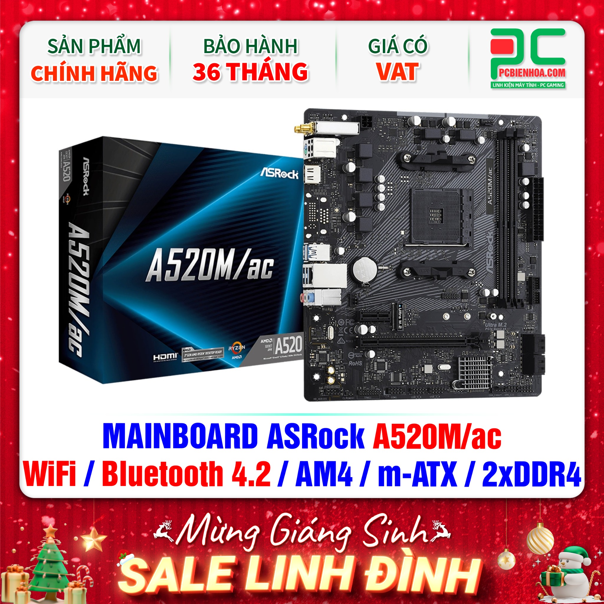 + So sánhMAINBOARD ASRock A520M/ac ( WiFi / Bluetooth 4.2 / AM4 / m-ATX / 2xDDR4 )
