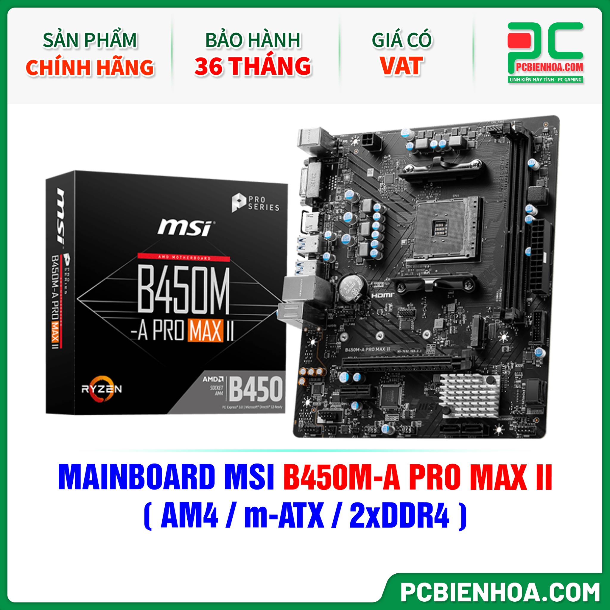 + So sánhMAINBOARD MSI B450M-A PRO MAX II ( AM4 / m-ATX / 2xDDR4 )
