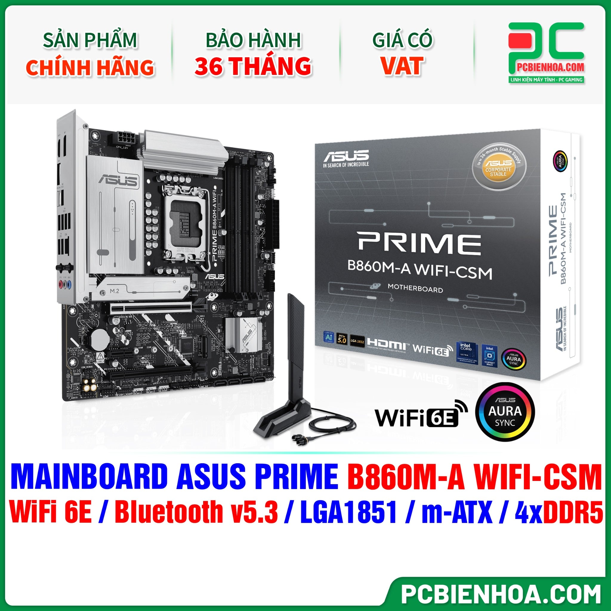 + So sánhDDR5 - MAINBOARD ASUS PRIME B860M-A WIFI-CSM ( WiFi 6E / Bluetooth v5.3 / LGA1851 / m-ATX / 4xDDR5 )