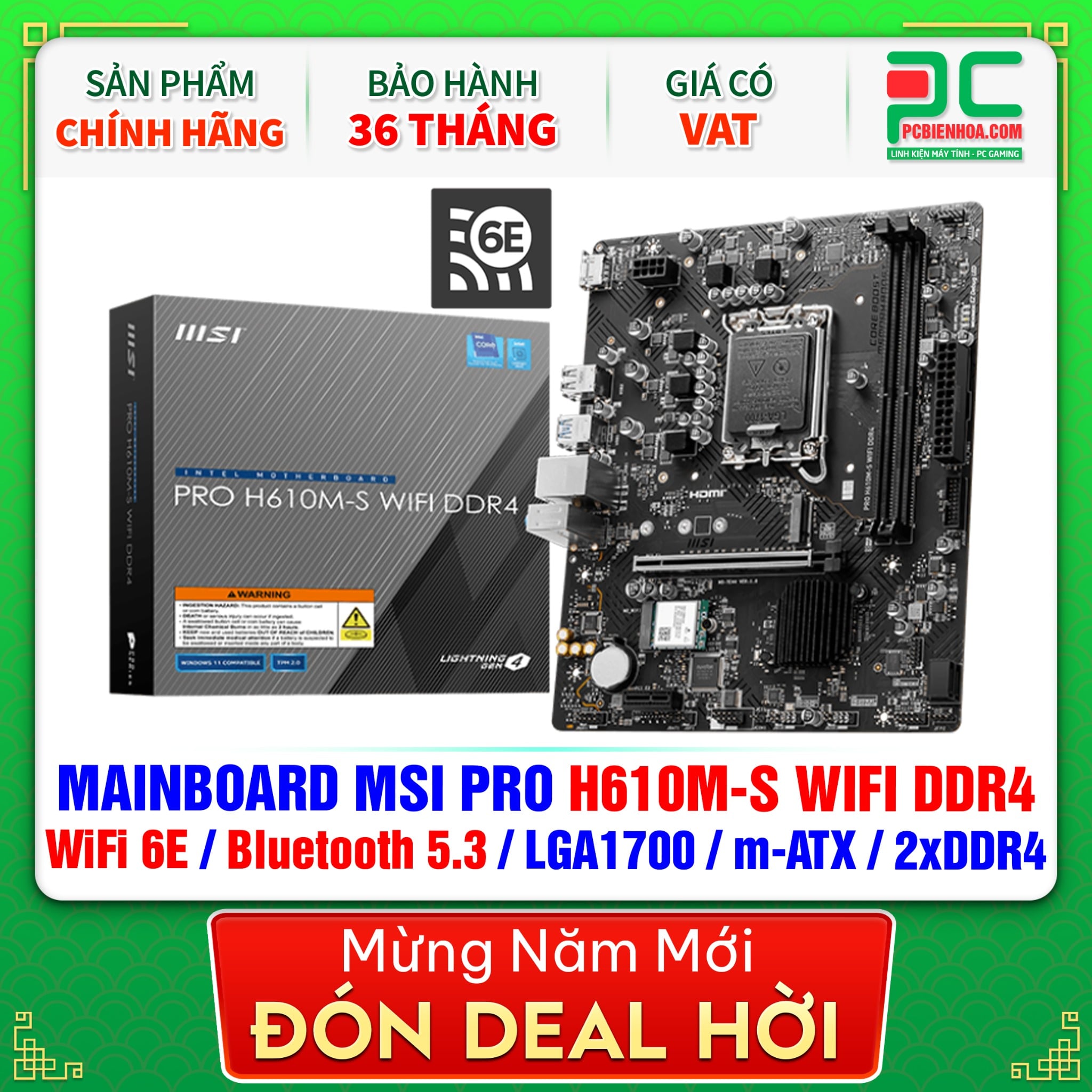 + So sánhMAINBOARD MSI PRO H610M-S WIFI DDR4 ( WiFi 6E / Bluetooth 5.3 / LGA1700 / m-ATX / 2xDDR4 )