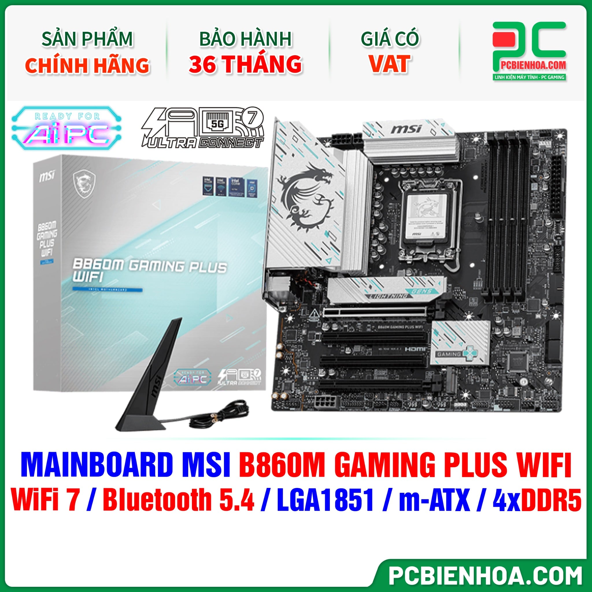+ So sánhDDR5 - MAINBOARD MSI B860M GAMING PLUS WIFI ( WiFi 7 / Bluetooth 5.4 / LGA1851 / m-ATX / 4xDDR5 )