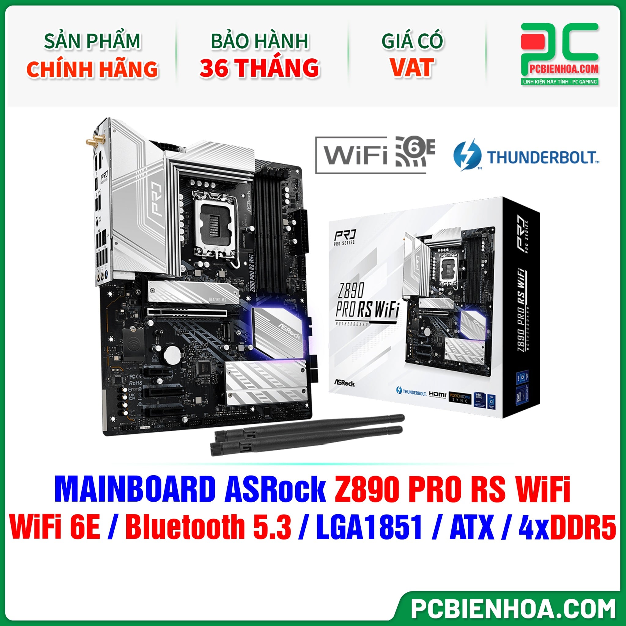+ So sánhDDR5 - MAINBOARD ASRock Z890 PRO RS WiFi ( WiFi 6E / Bluetooth 5.3 / LGA1851 / ATX / 4xDDR5 )