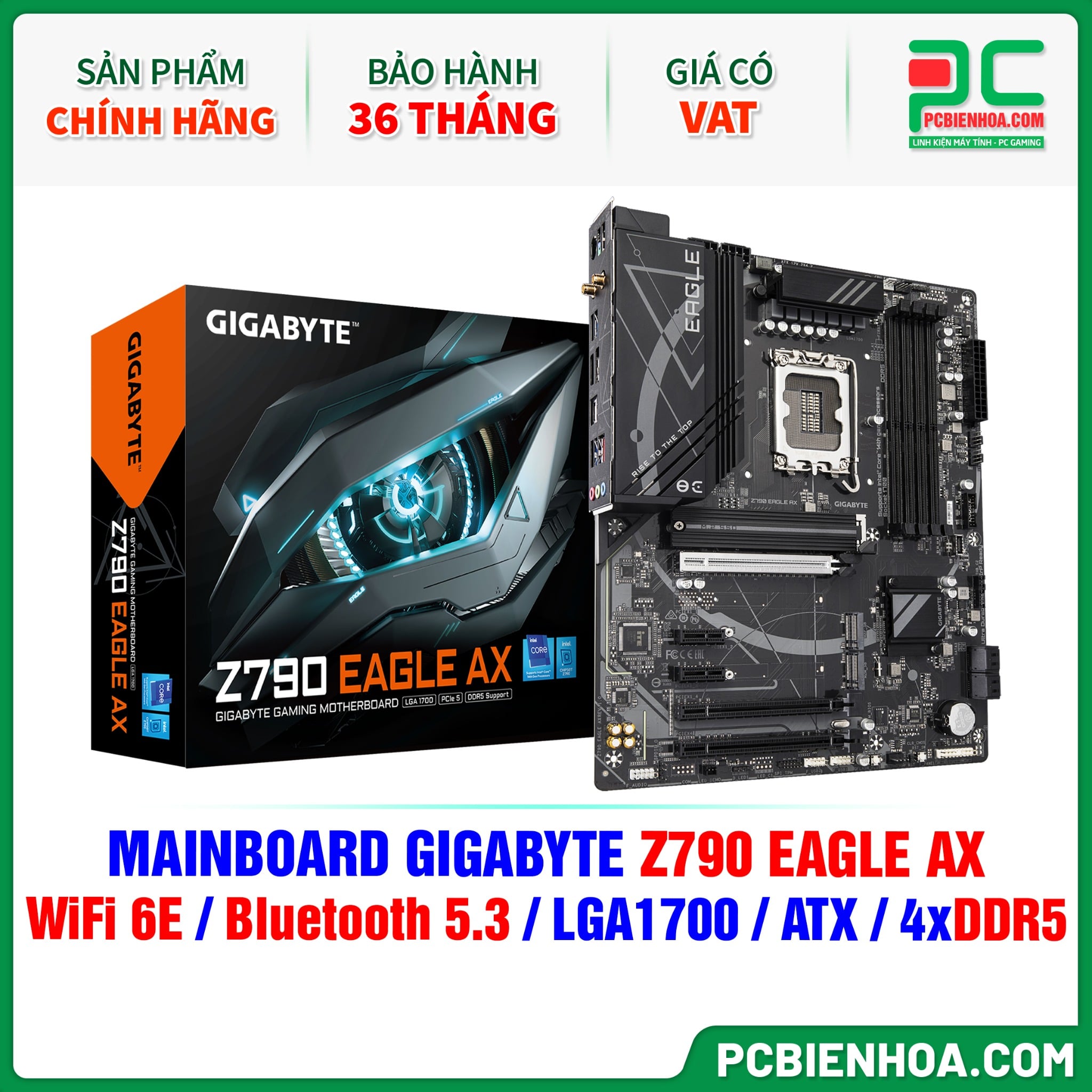 + So sánhDDR5 - MAINBOARD GIGABYTE Z790 EAGLE AX ( WiFi 6E / Bluetooth 5.3 / LGA1700 / ATX / 4xDDR5 )