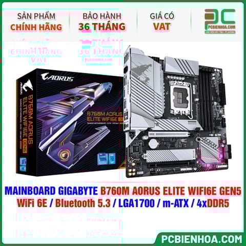 + So sánhMAINBOARD GIGABYTE B760M AORUS ELITE WIFI6E GEN5 ( WiFi 6E / Bluetooth 5.3 / LGA1700 / m-ATX / 4xDDR5 )
