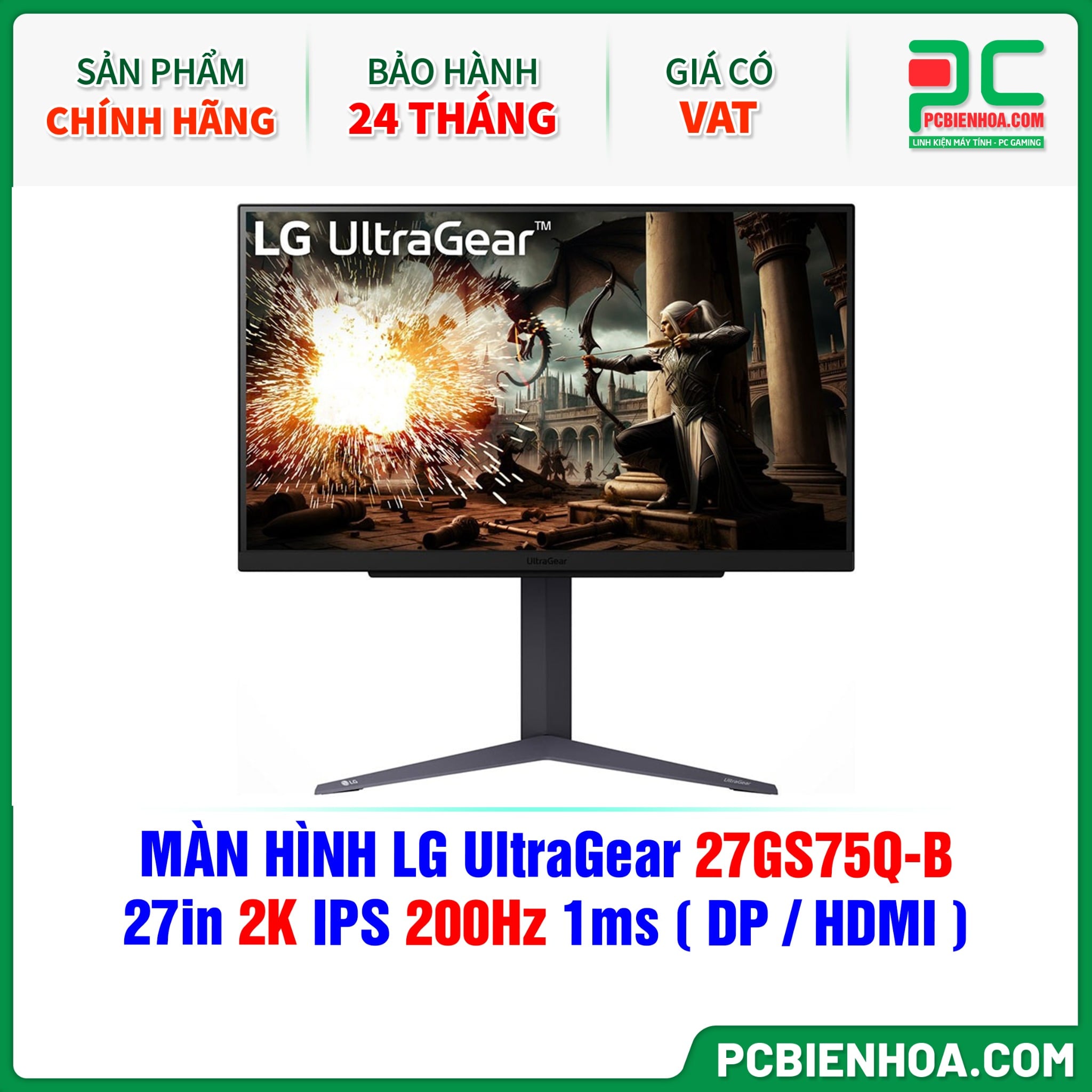 MÀN HÌNH LG UltraGear 27GS75Q-B - 27in 2K IPS 200Hz 1ms ( DP / HDMI )