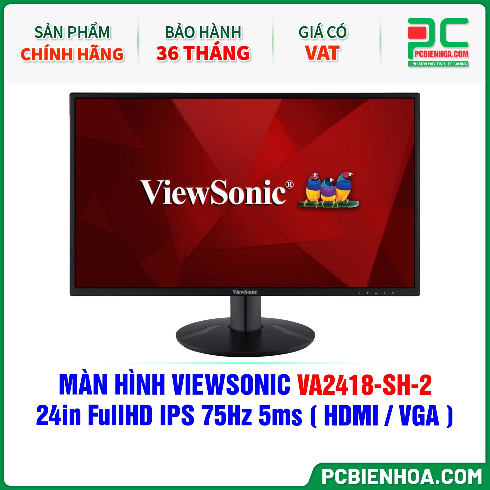 MÀN HÌNH VIEWSONIC VA2418-SH-2 - 24in FullHD IPS 75Hz 5ms ( HDMI / VGA )