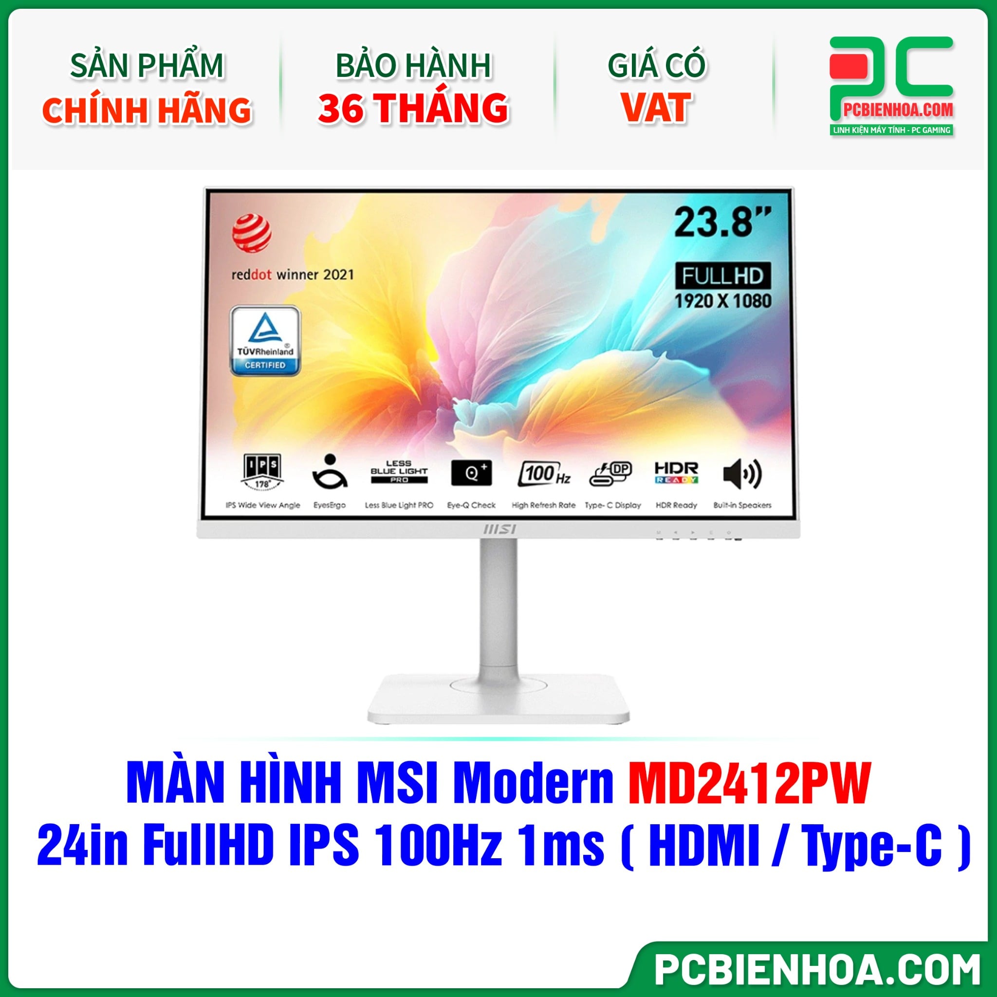 MÀN HÌNH MSI Modern MD2412PW TRẮNG - 24in FullHD IPS 100Hz 1ms ( HDMI / USB Type-C )