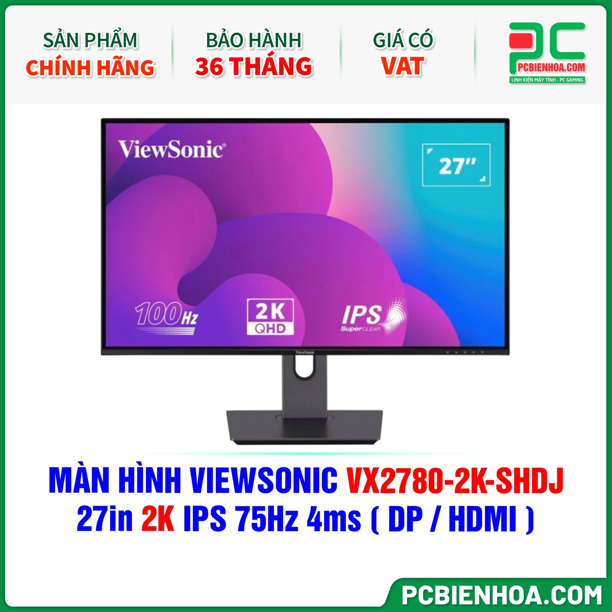 MÀN HÌNH VIEWSONIC VX2780-2K-SHDJ - 27in 2K IPS 75Hz 4ms ( DP / HDMI )