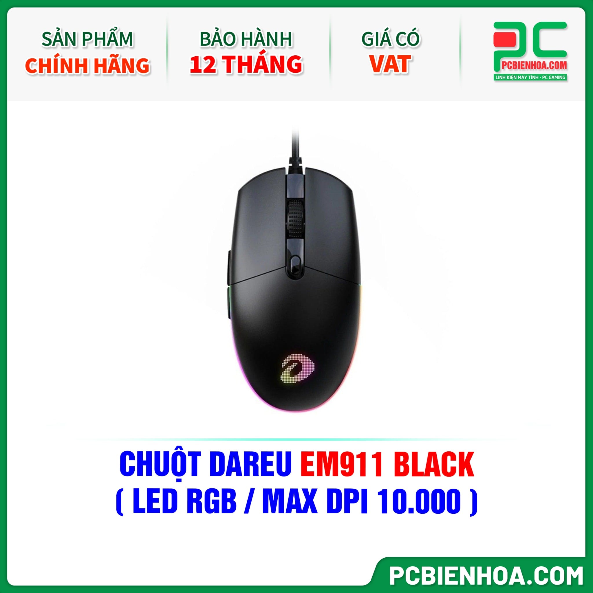 CHUỘT DAREU EM911 BLACK ( LED RGB / MAX DPI 10.000 )