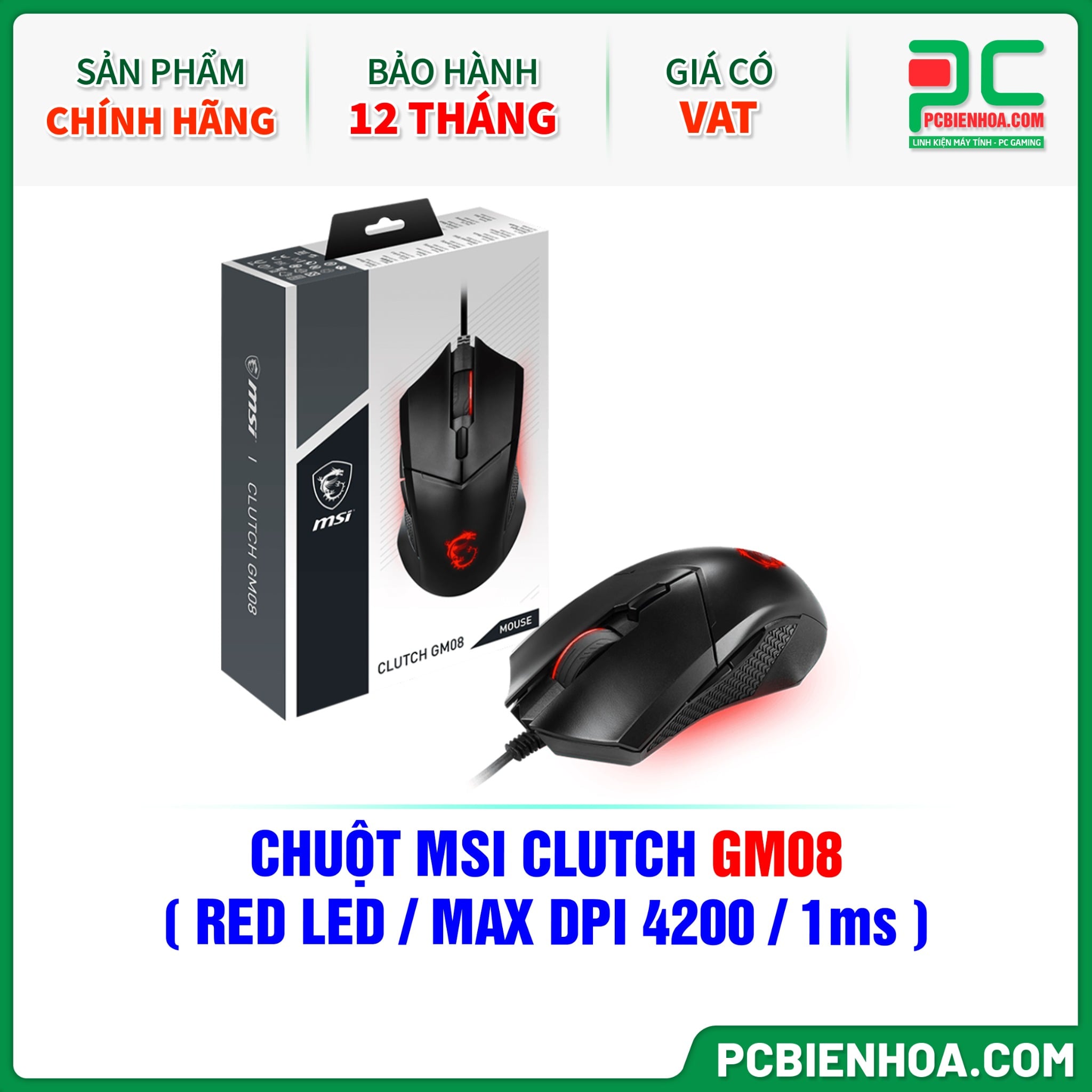 CHUỘT MSI CLUTCH GM08 ( RED LED / MAX DPI 4200 / 1ms )