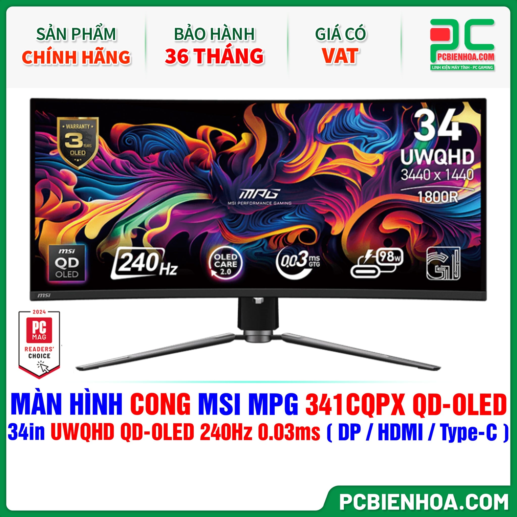 MÀN HÌNH CONG MSI MPG 341CQPX QD-OLED - 34in UWQHD QD-OLED 240Hz 0.03ms ( DP / HDMI / USB Type-C )