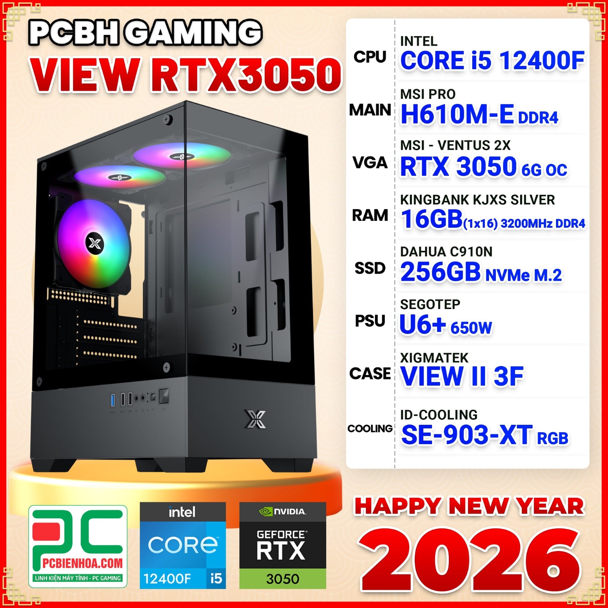 PCBH GAMING VIEW CORE i5 12400F / H610M / RTX 3050 6G / 16GB / 256GB