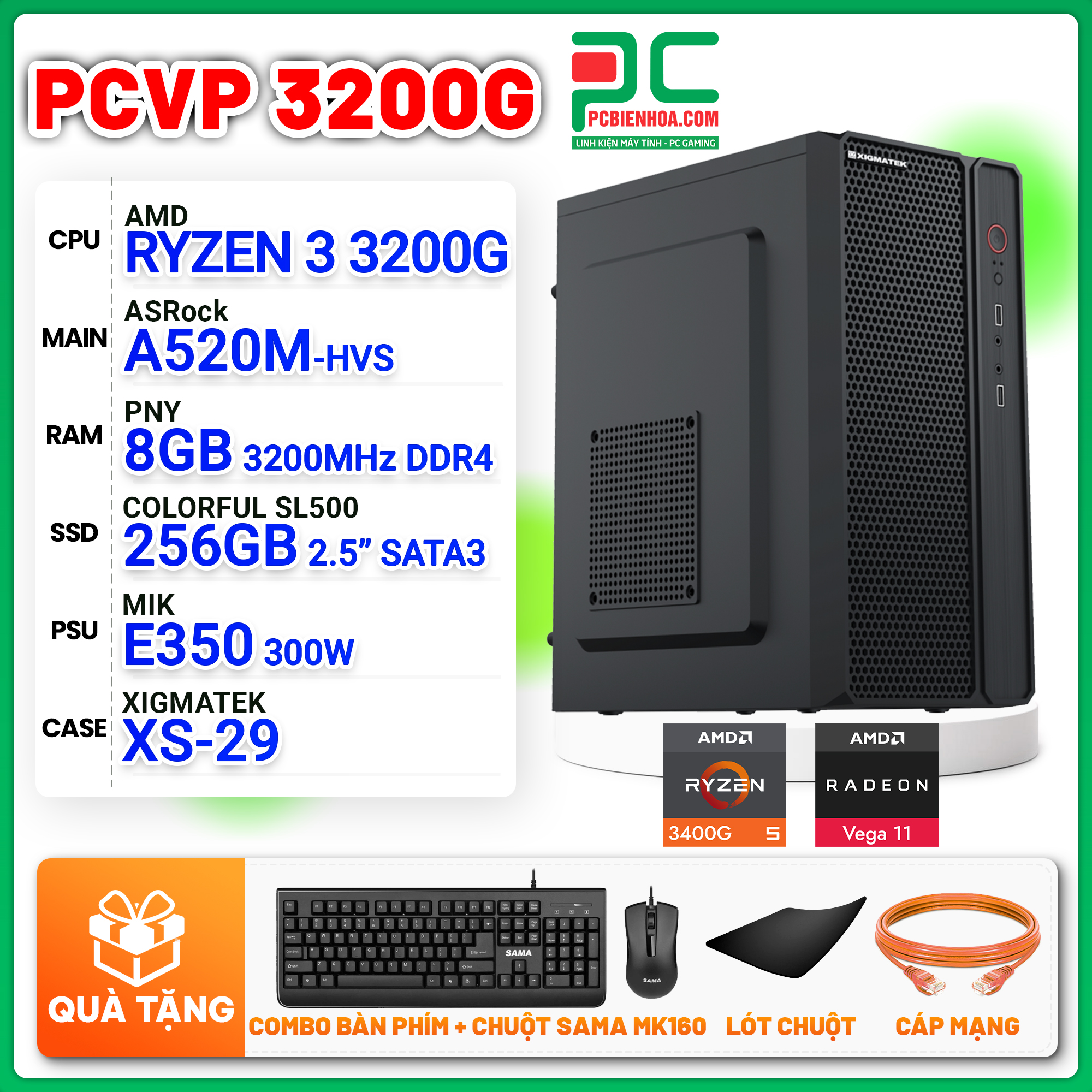 MÁY TÍNH VĂN PHÒNG AMD RYZEN 3 3200G / A520M / 8GB / 256GB