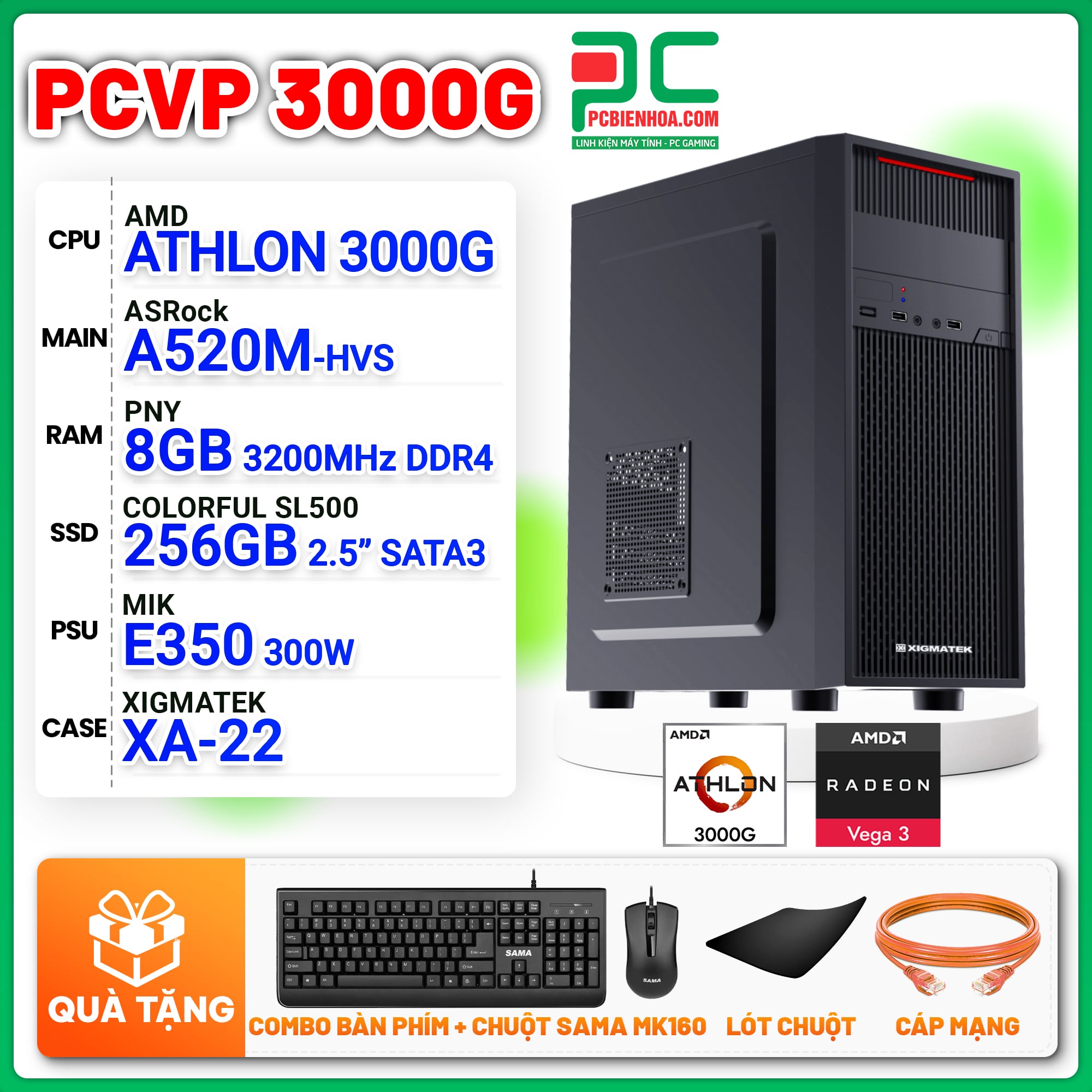 MÁY TÍNH VĂN PHÒNG AMD ATHLON 3000G / A520M / 8GB / 256GB