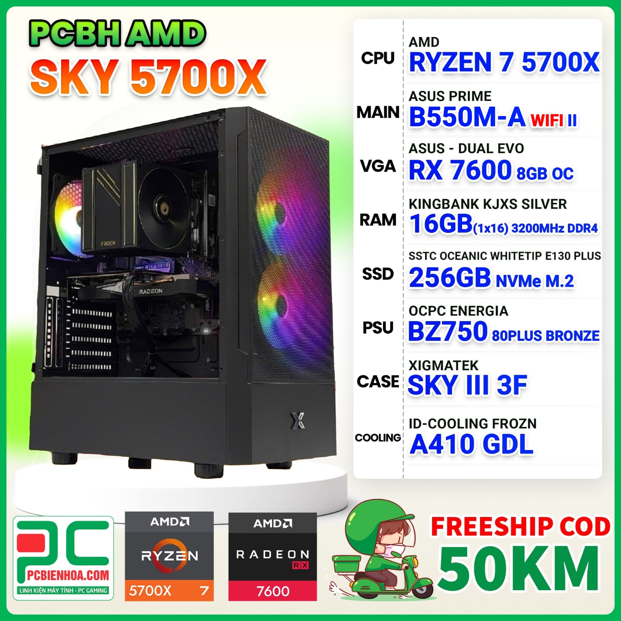 PCBH AMD SKY RYZEN 7 5700X / B550M WiFi / RX 7600 8GB / 16GB / 256GB