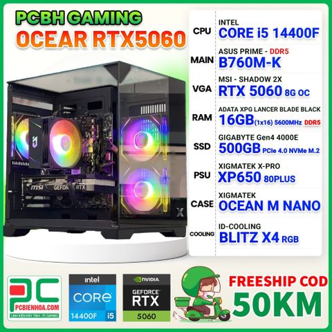 PCBH GAMING OCEAN CORE i5 14400F / B760M / RTX 5060 8GB / 16GB DDR5 / 500GB