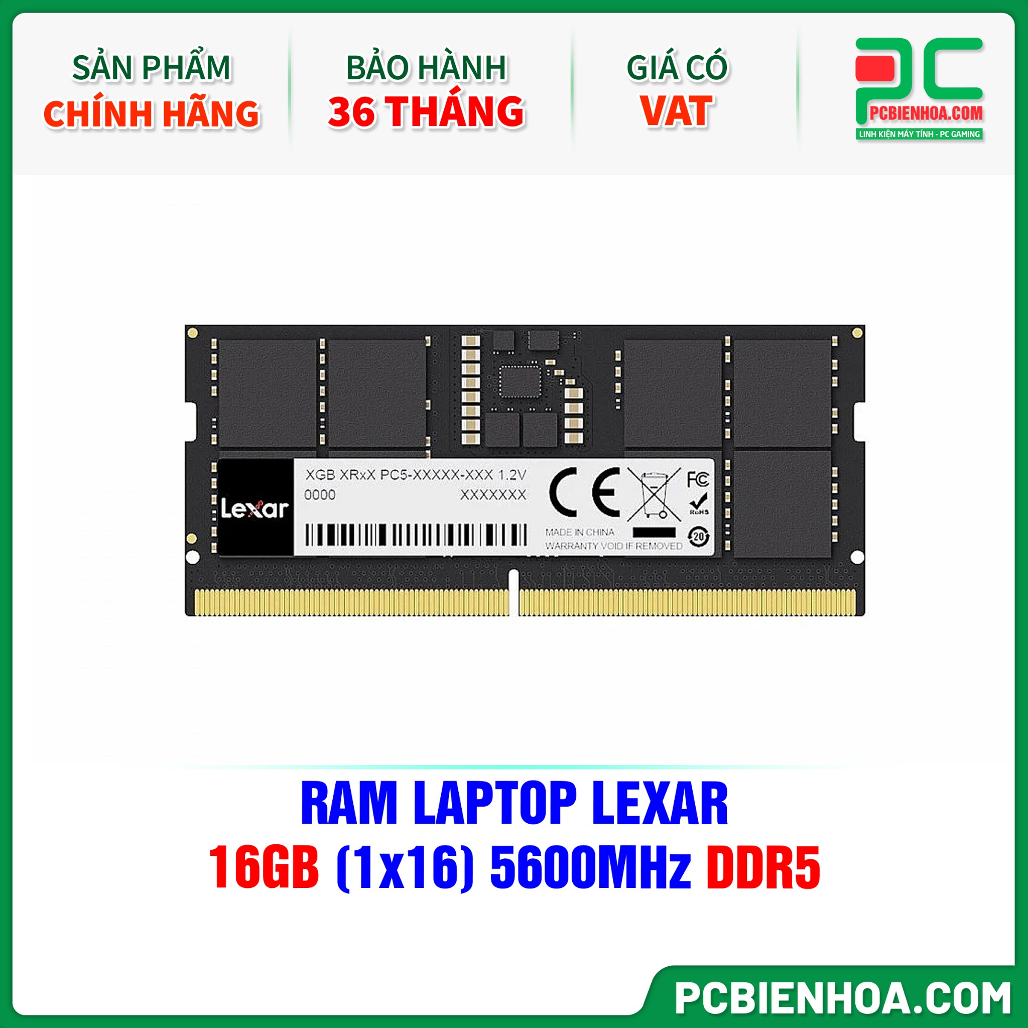 + So sánhRAM LAPTOP LEXAR 16GB (1x16) 5600MHz DDR5 ( LD5S16G56C46ST-BGS )