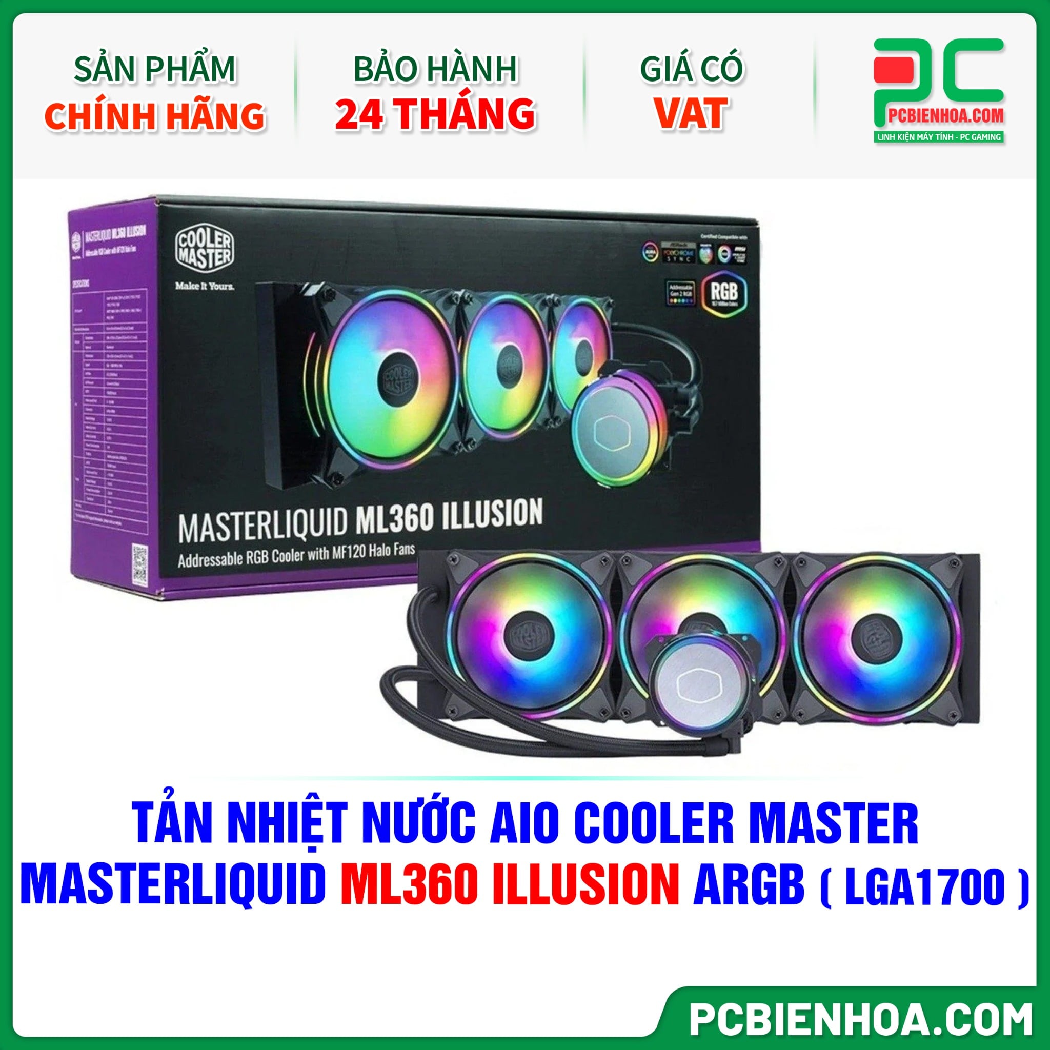 TẢN NHIỆT NƯỚC AIO COOLER MASTER MASTERLIQUID ML360 ILLUSION ARGB ( HỖ TRỢ SOCKET LGA1700 )