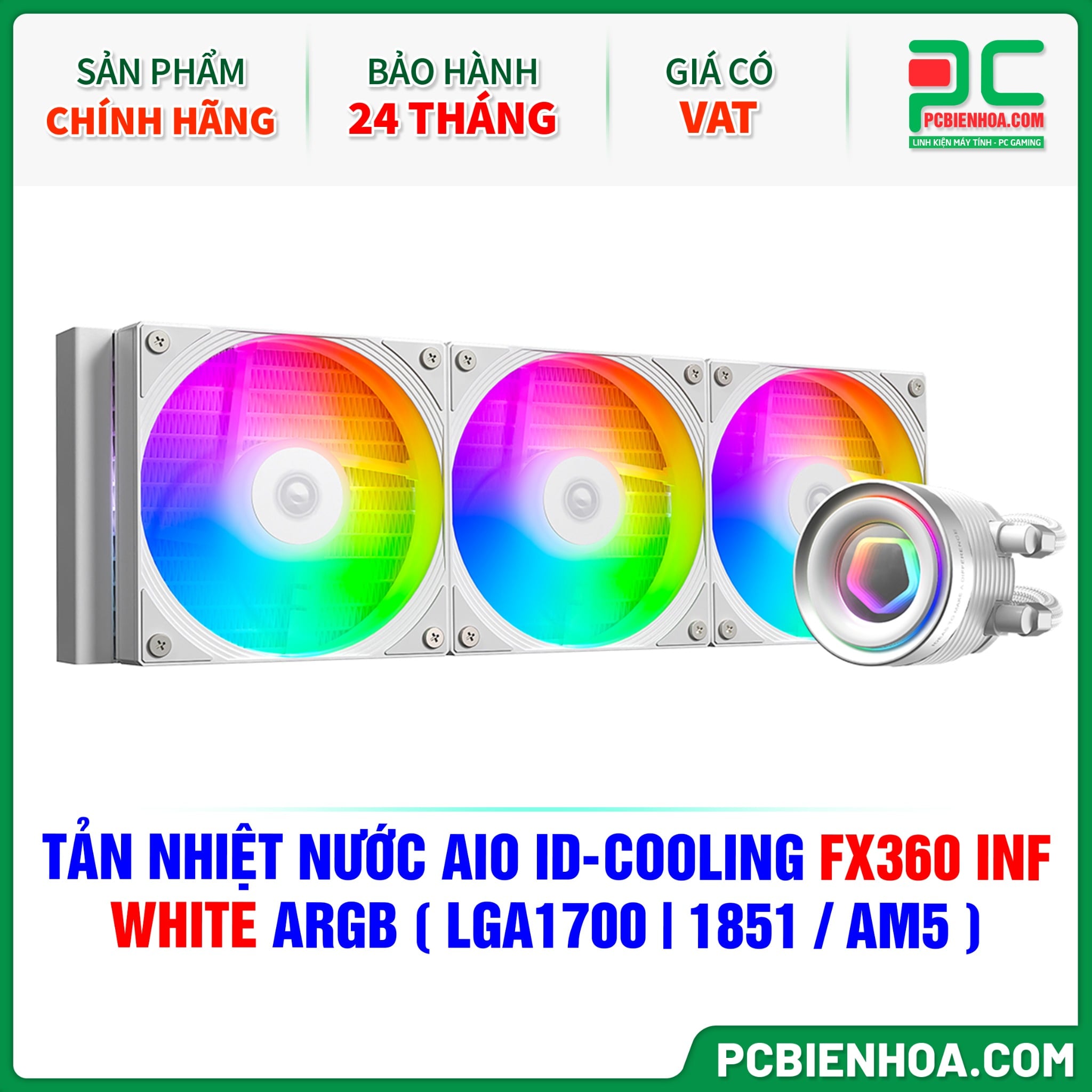 TẢN NHIỆT NƯỚC AIO ID-COOLING FX360 INF WHITE ARGB ( HỖ TRỢ SOCKET LGA1700|1851 / AM5 )